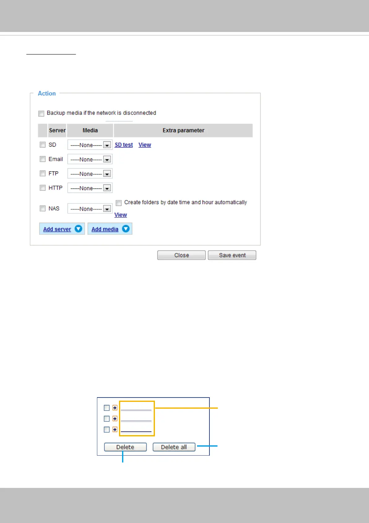 Select to send the media les to a networked storage when a trigger is activated. Please refer to NAS