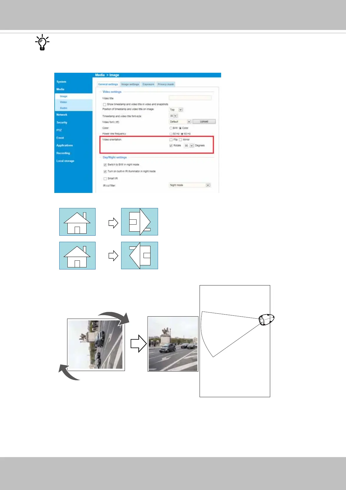 If the camera is installed on a vertical surface, e.g., on the side of a train, you