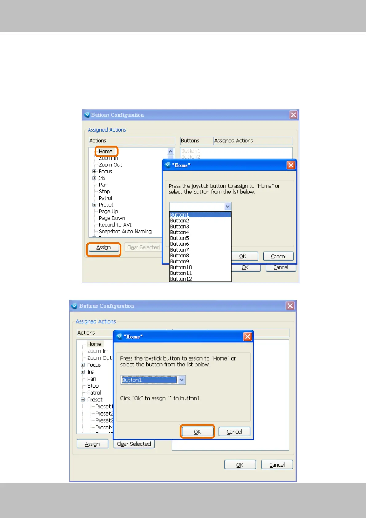 action to a button by pressing the joystick button or select it from the drop-down list.