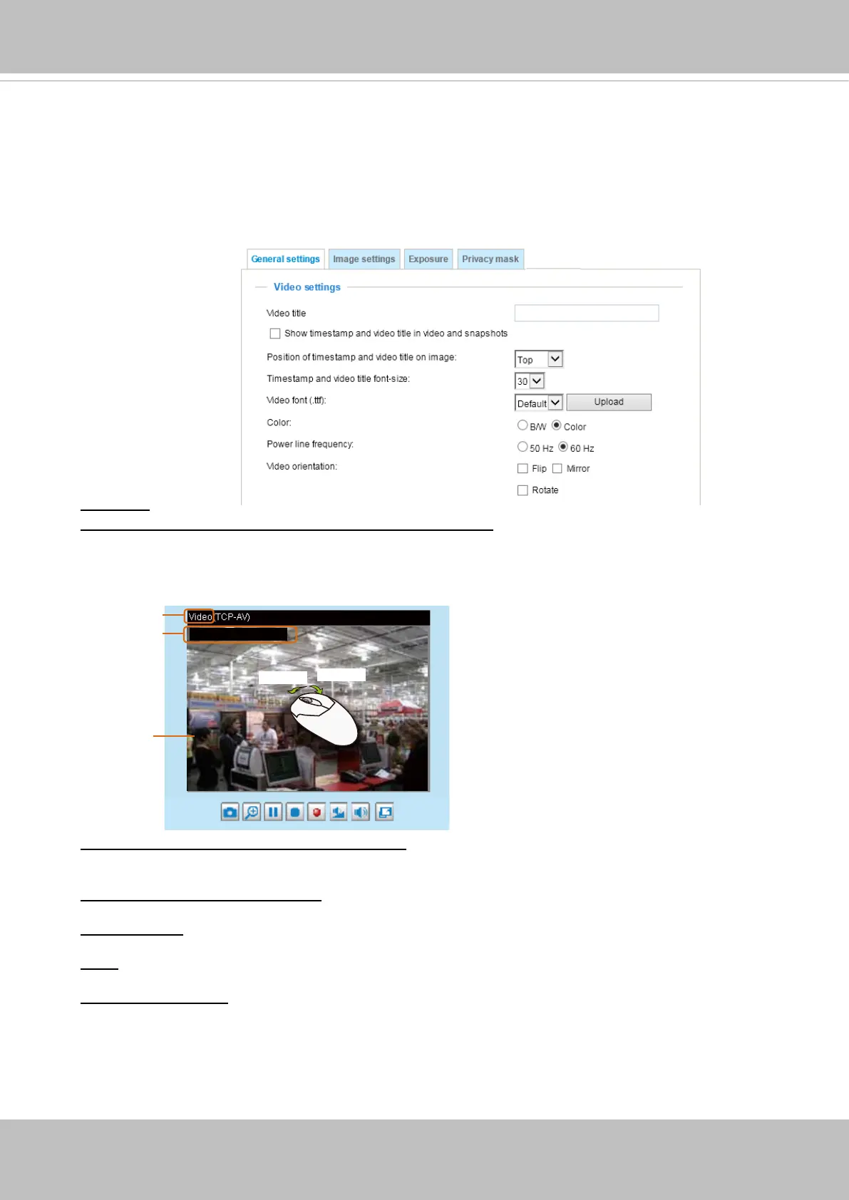 Position of timestamp and video title on image: Select to display time stamp and video title on the