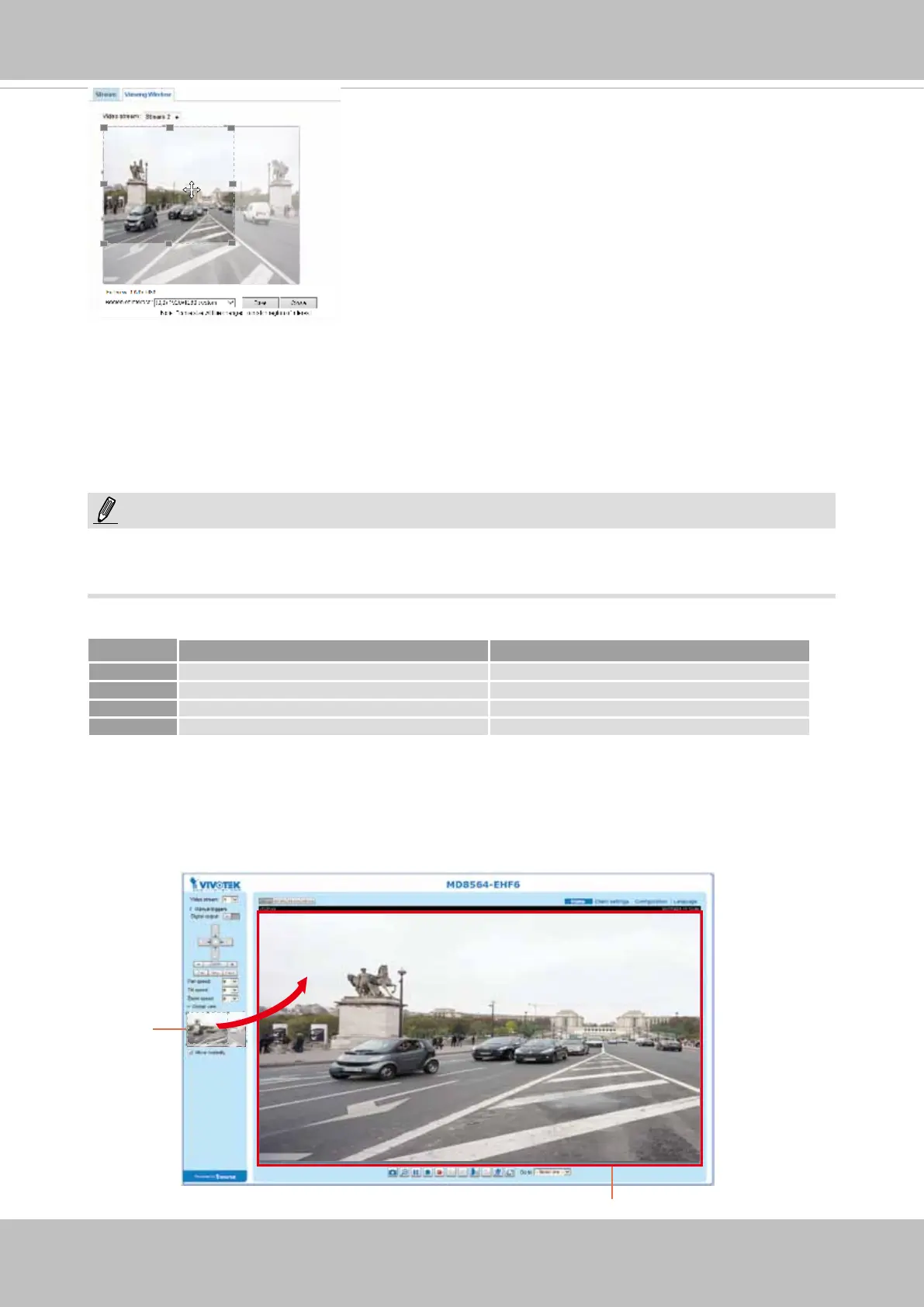 the Frame size of each video stream. Then you can go back to the home page to test the e-PTZ