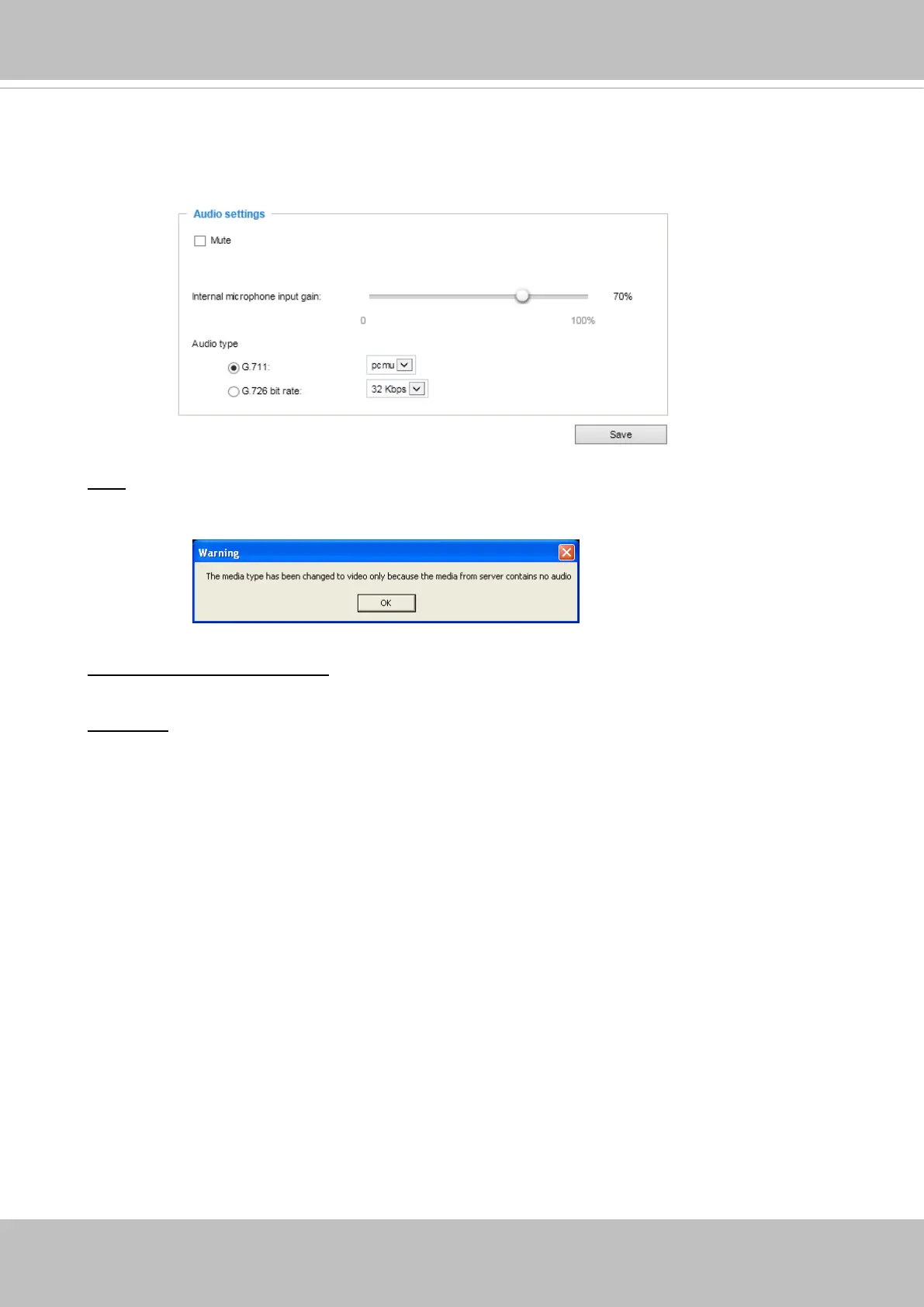 Mute: Select this option to disable audio transmission from the Network Camera to all clients. Note
