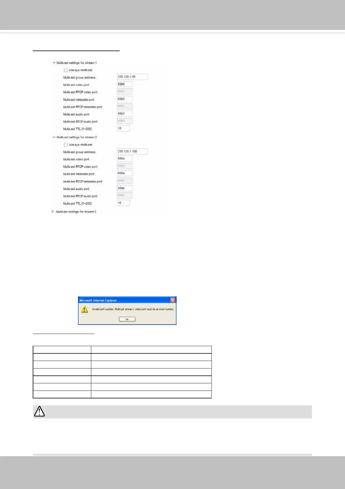 If the multicast RTP video ports are incorrectly assigned, the following warning message will be