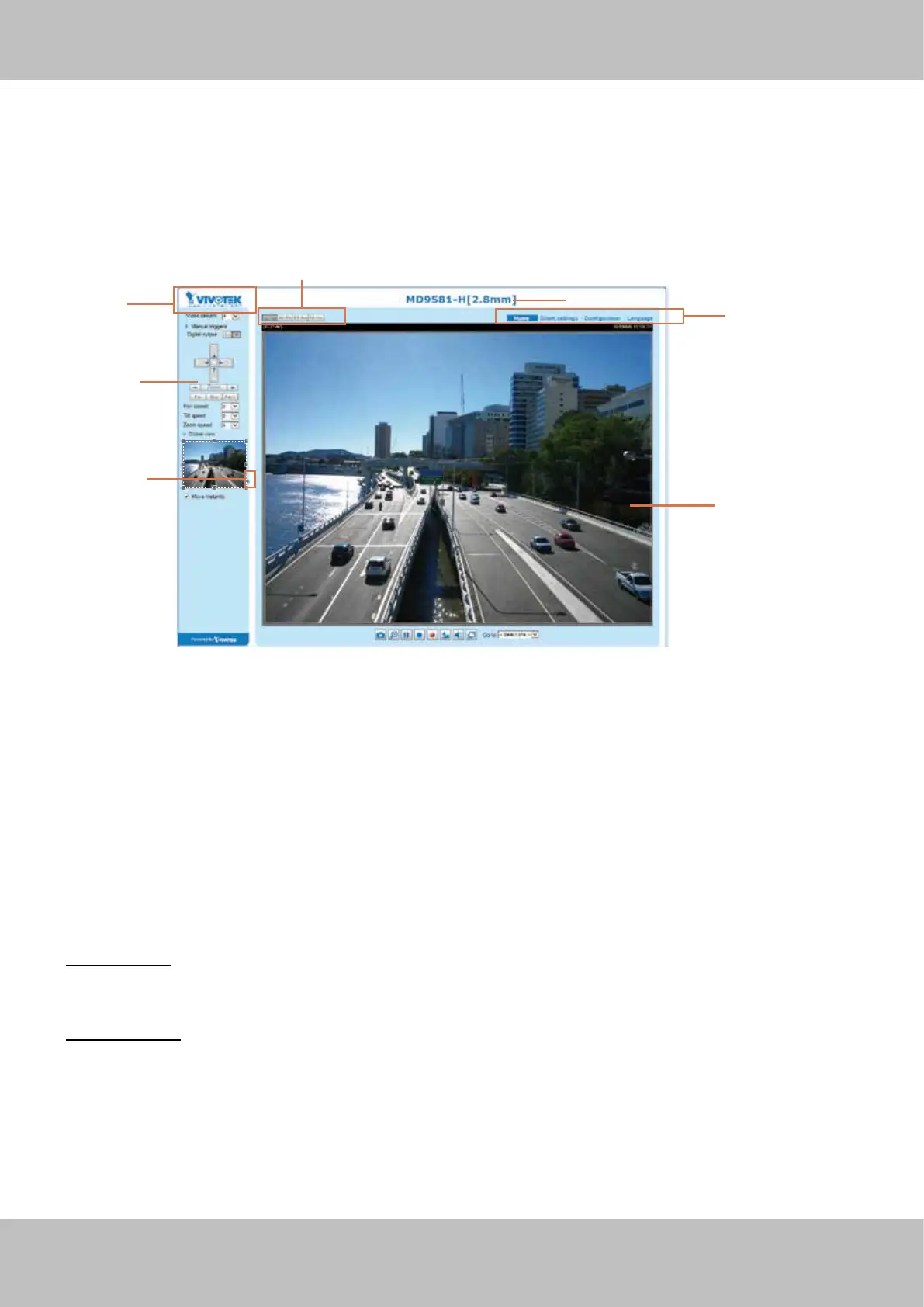 VIVOTEK INC. Logo, Host Name, Camera Control Area, Configuration Area, Menu, and Live