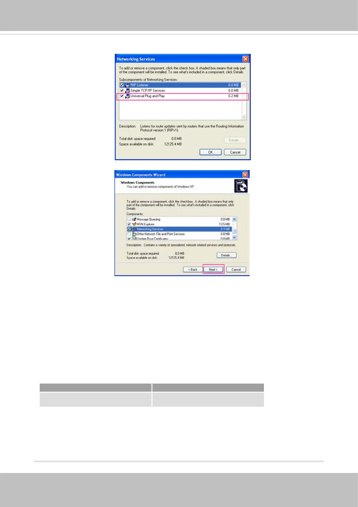 4. In the Networking Services dialog box, select Universal Plug and Play and click OK.