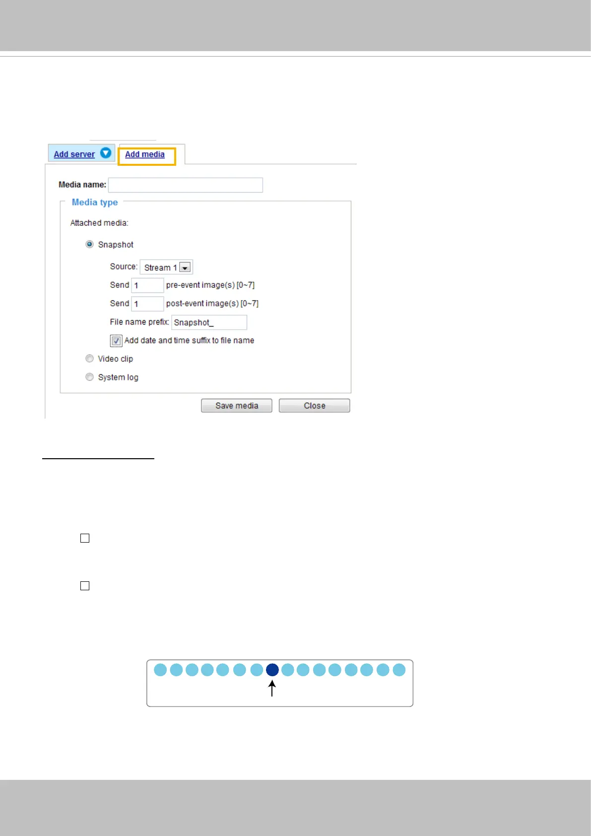 of media types available: Snapshot, Video Clip, and System log.