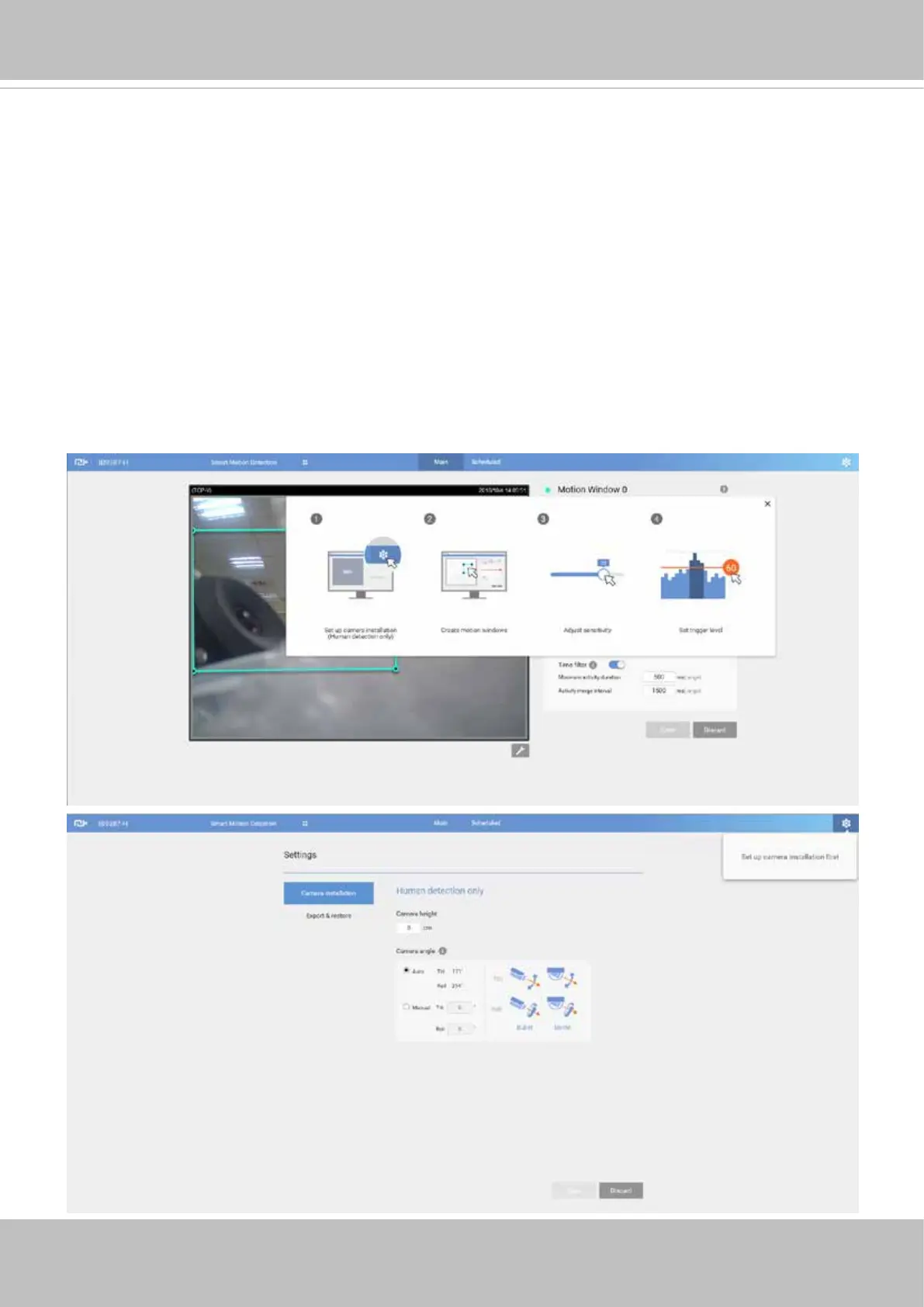 The camera comes with a Smart Motion Detection utility as its pre-loaded VCA package. Please