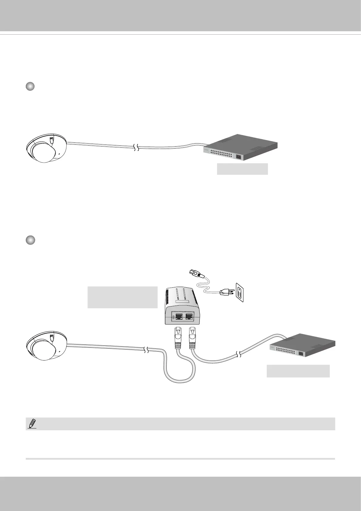 Use a PoE power injector (optional) to connect between the Network Camera and a non-
