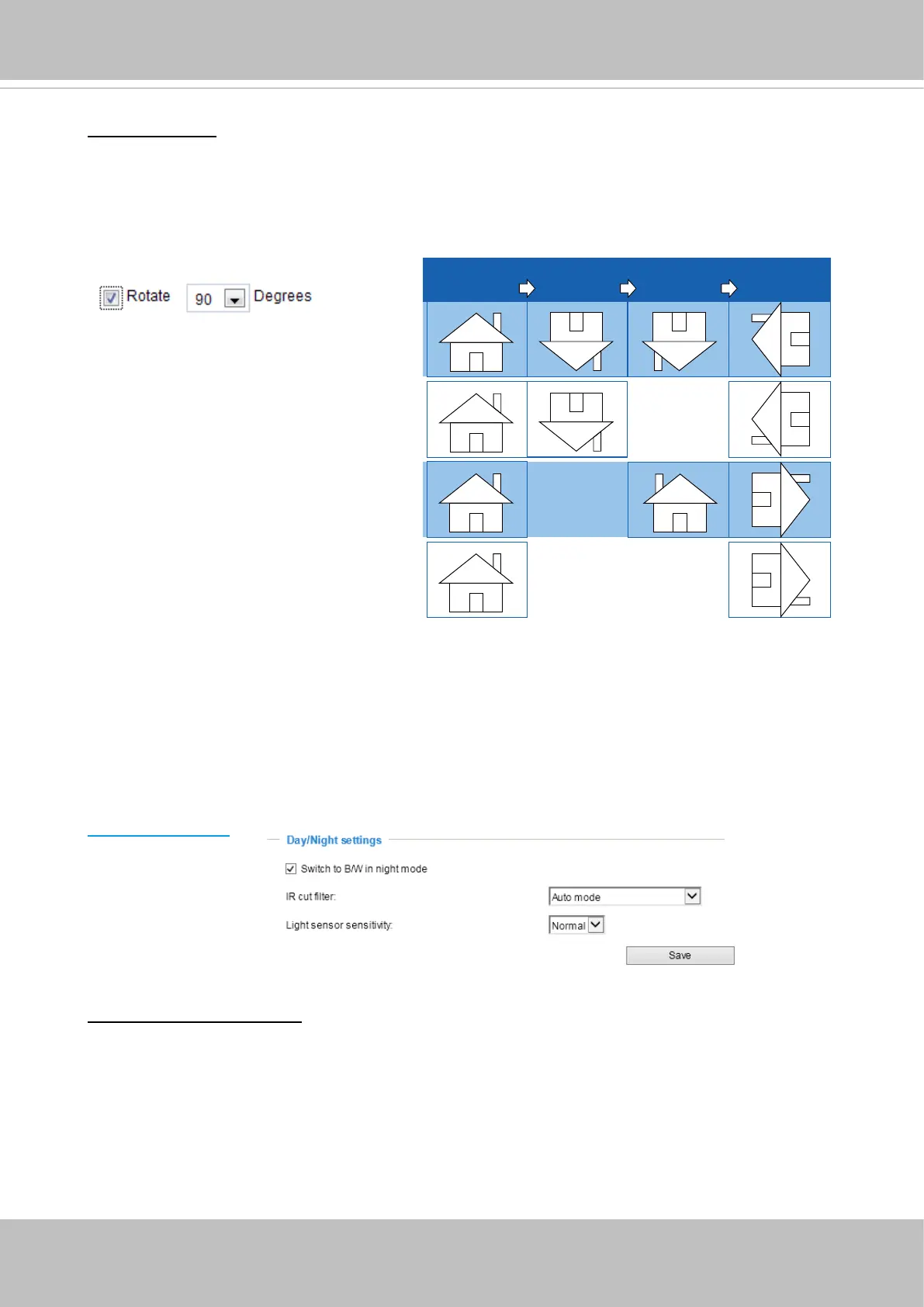 Video orientation: Flip - vertically reect the display of the live video; Mirror - horizontally reect the
