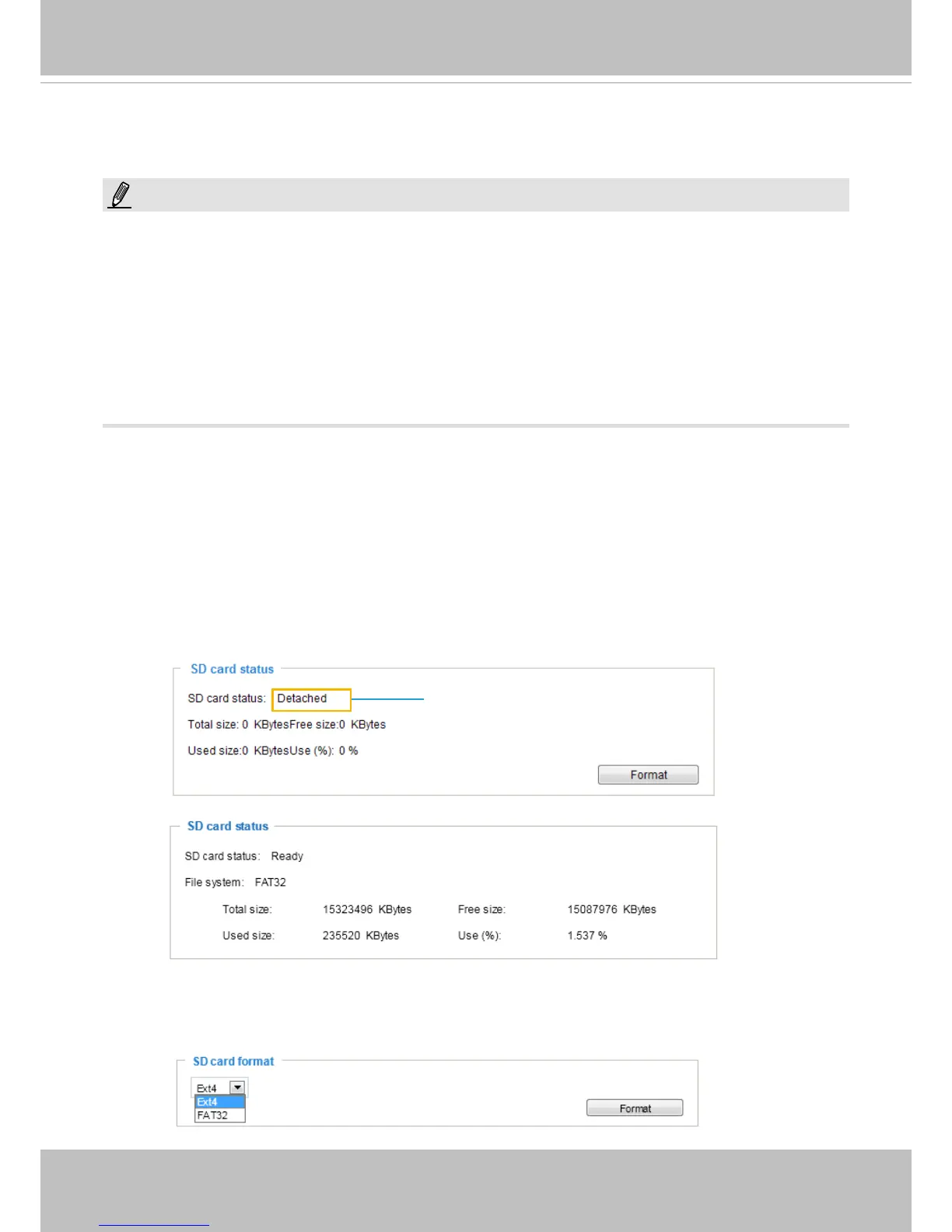 This column shows the status and reserved space of your SD card. Please remember to format the SD