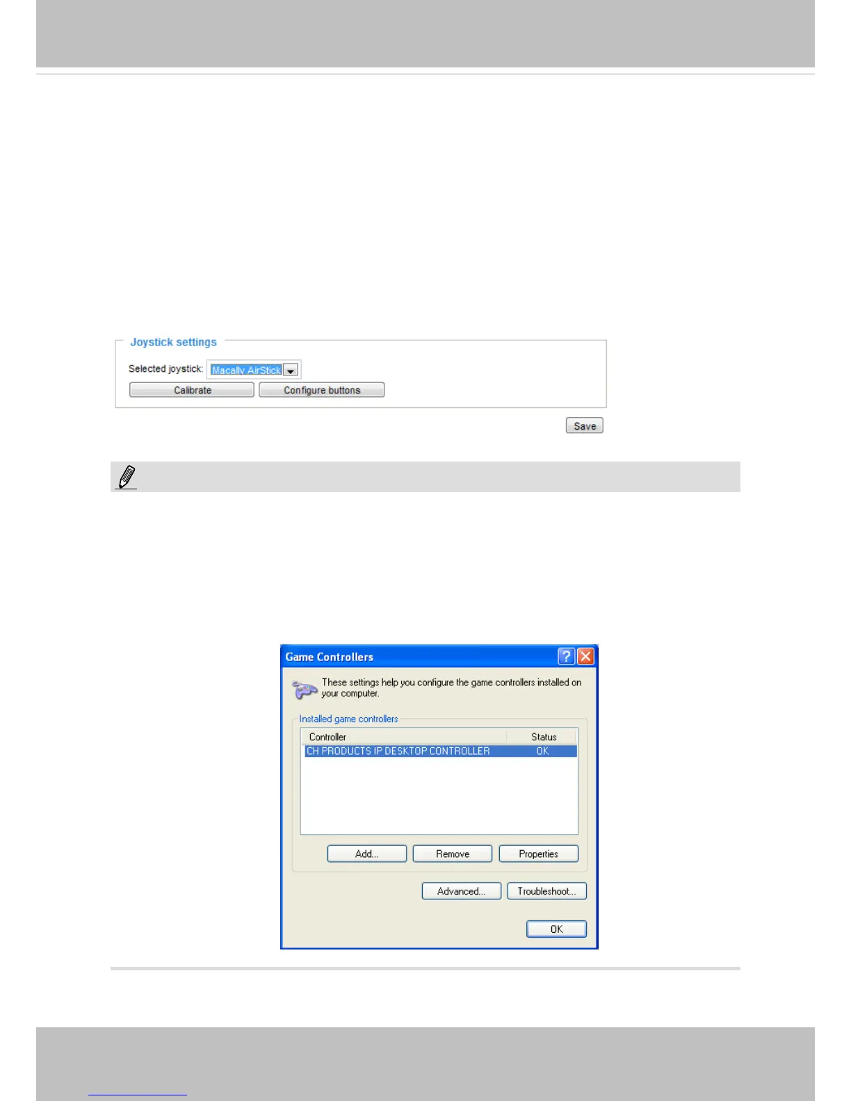 • If your joystick is not working properly, it may need to be calibrated. Click the Calibrate button