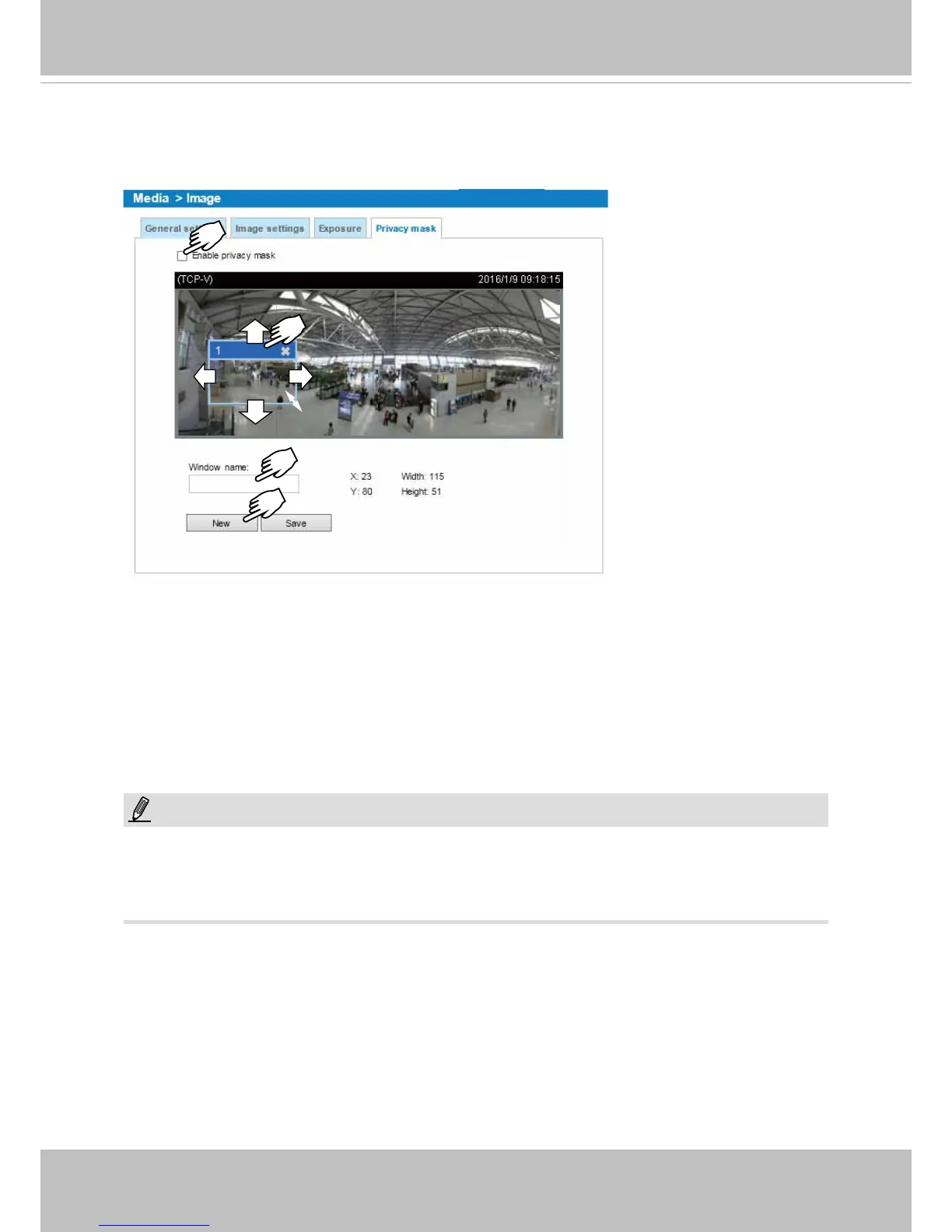 Up to 5 privacy mask windows can be congured on the same screen.