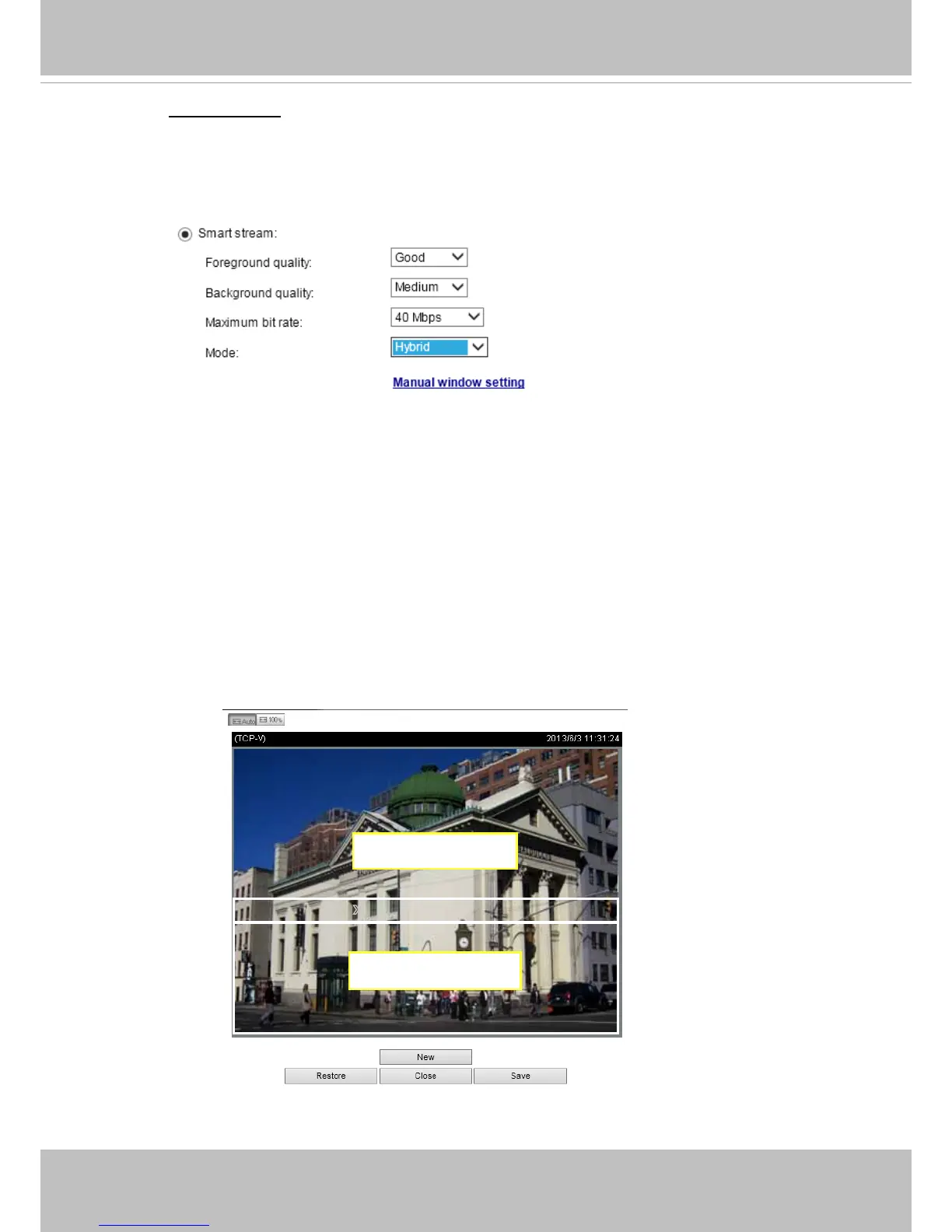 - Manual: The Manual mode allows you to configure 3 ROI windows (Region of