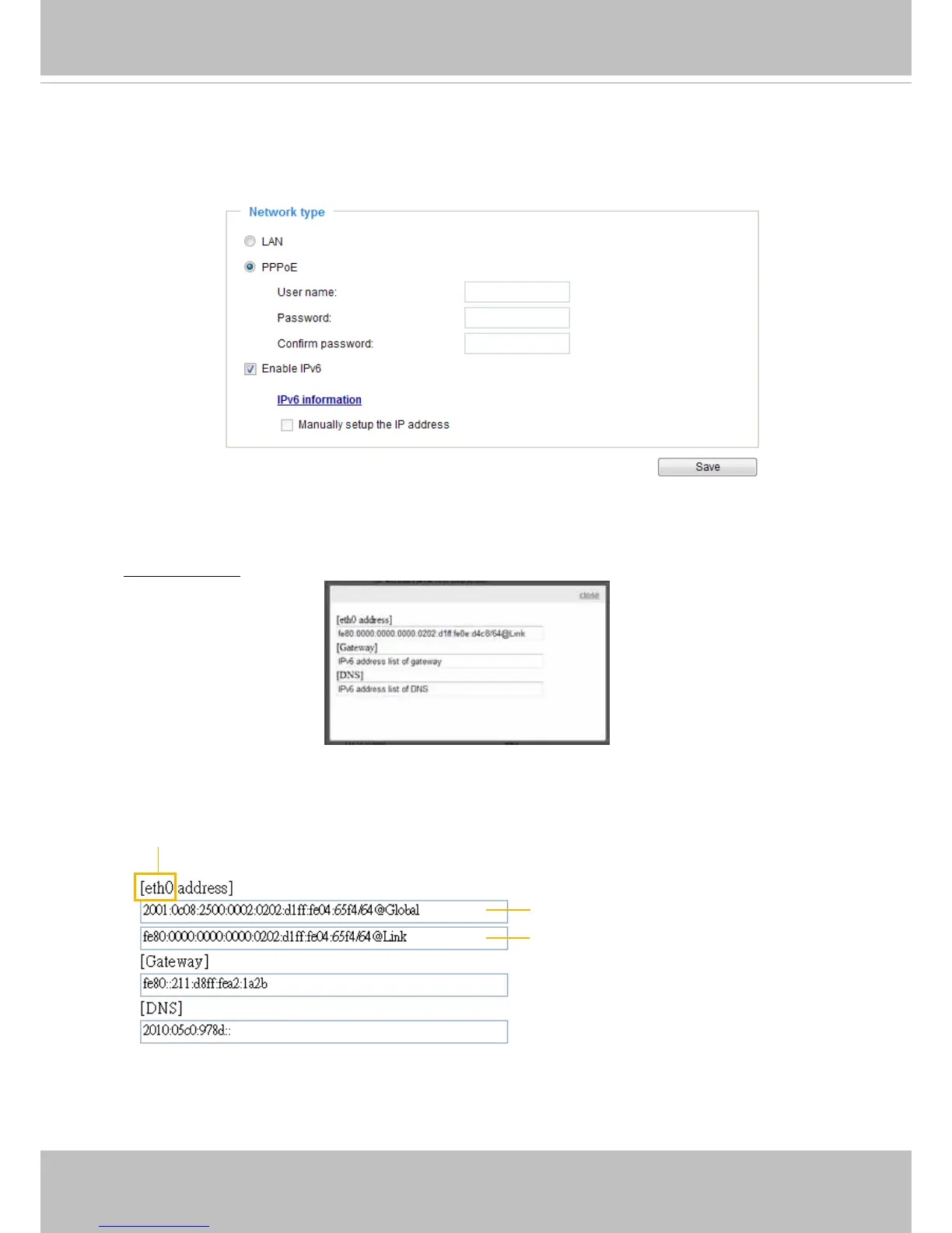 Select this option and click Save to enable IPv6 settings.