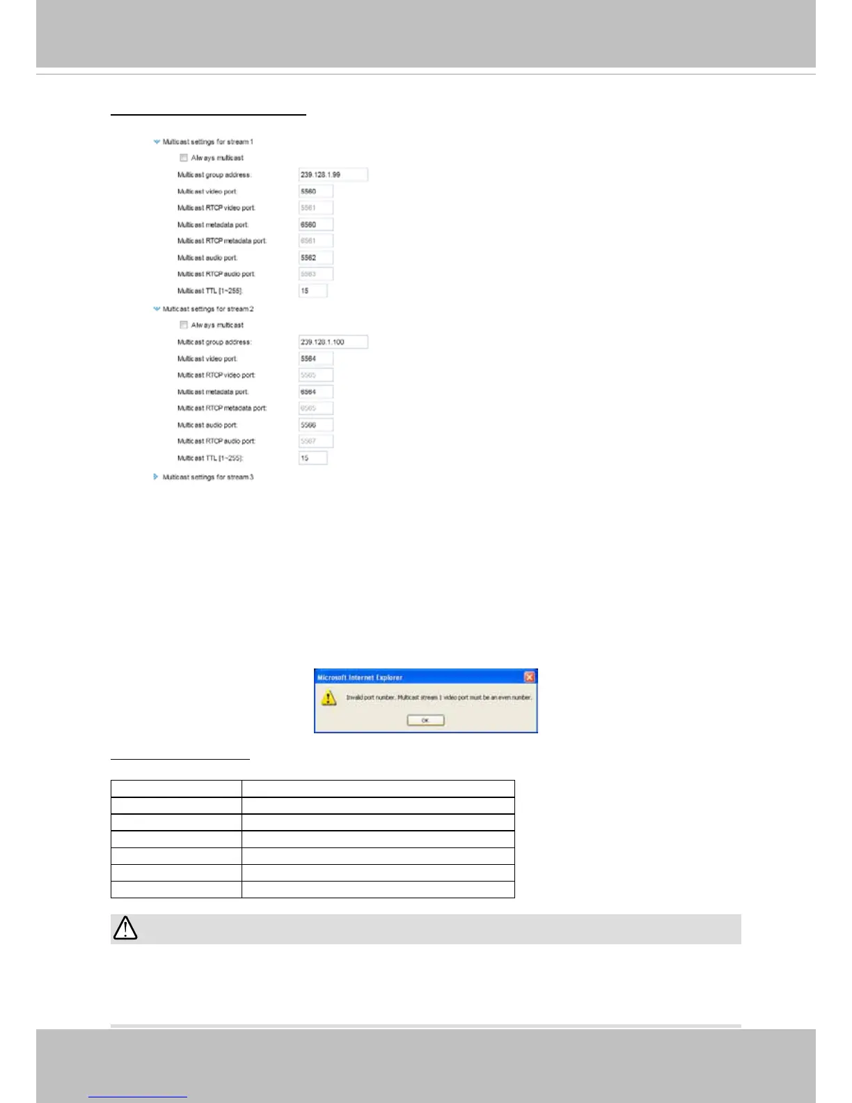 If the multicast RTP video ports are incorrectly assigned, the following warning message will be