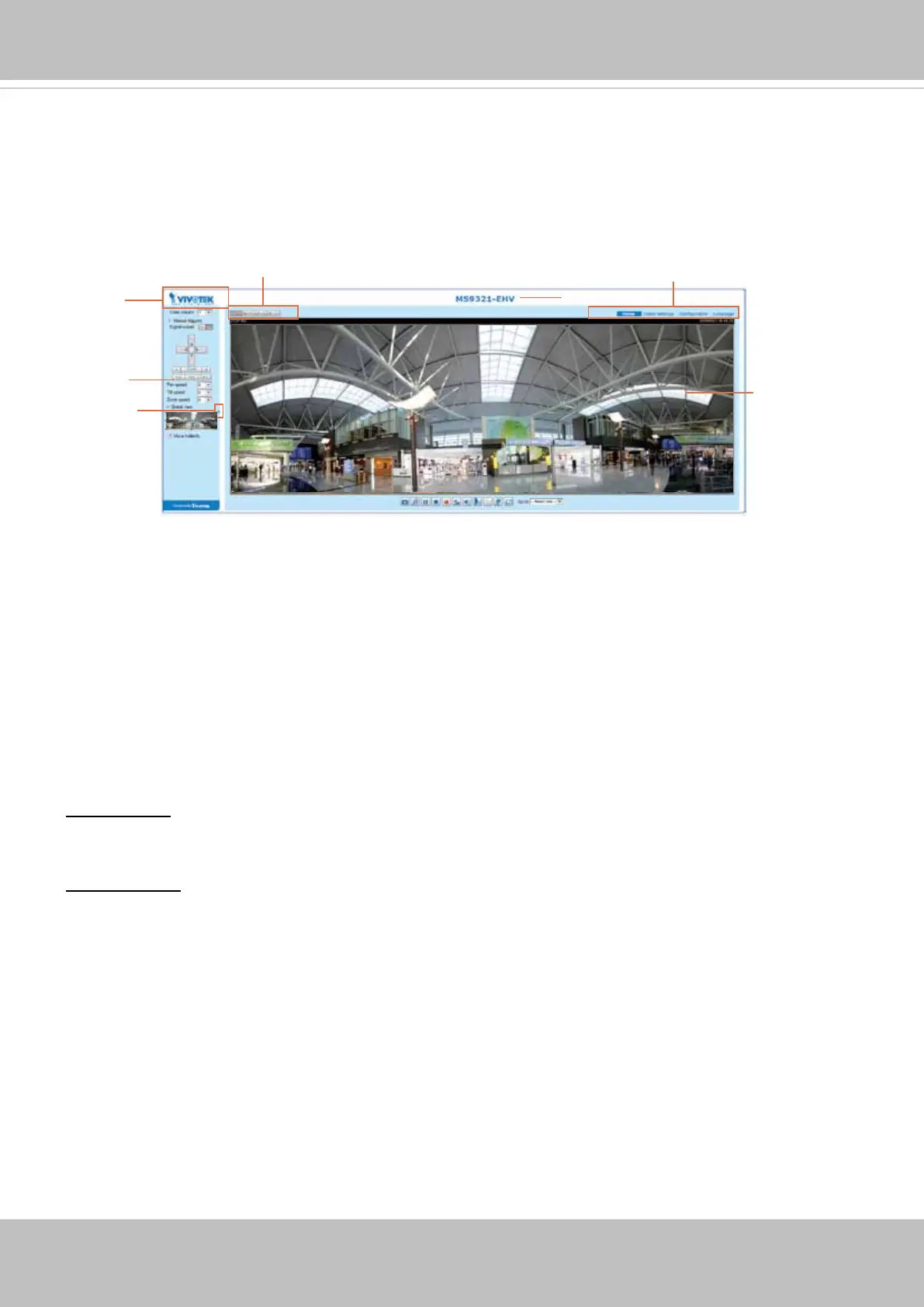 VIVOTEK INC. Logo, Host Name, Camera Control Area, Configuration Area, Menu, and Live