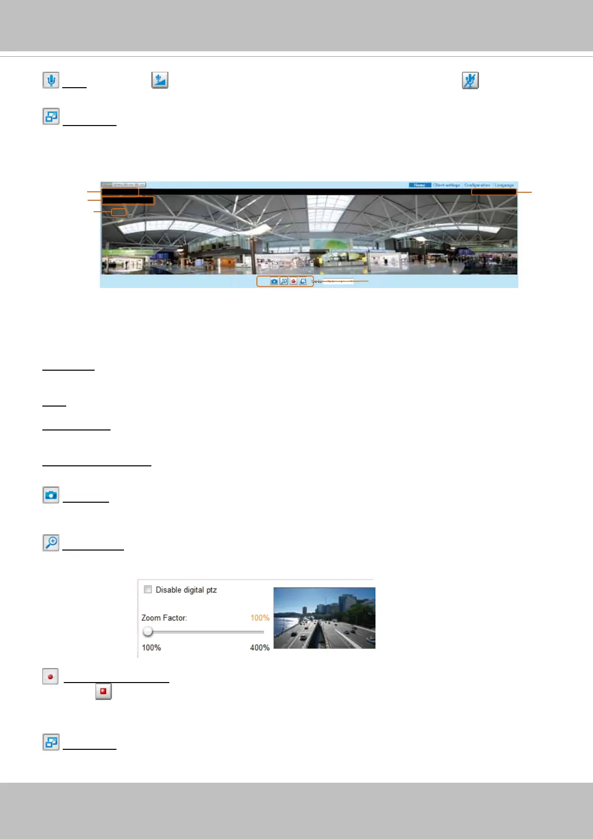 Snapshot: Click this button to capture and save still images. The captured images will be displayed