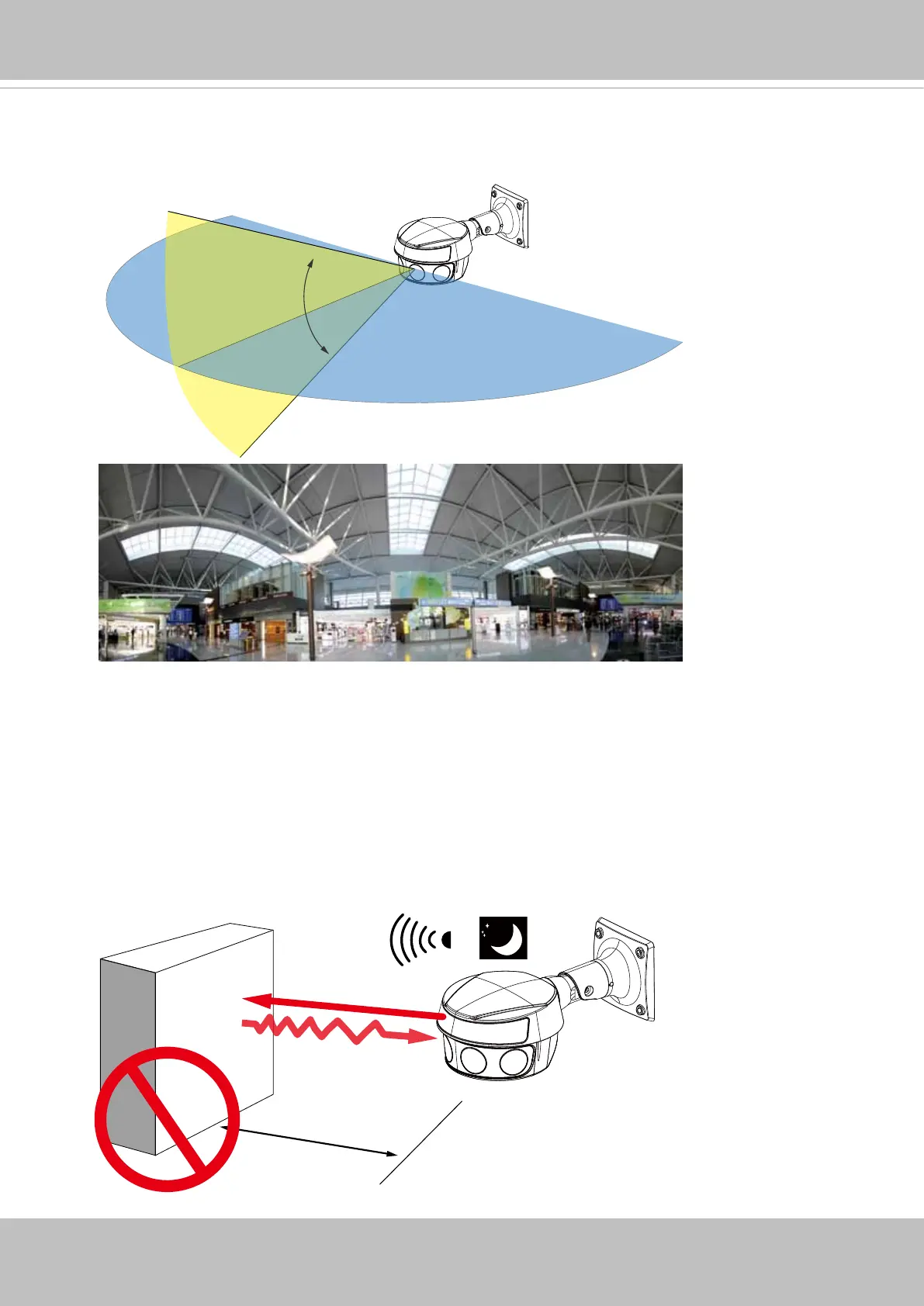 The eld of view is illustrated above. Note that the higher the camera is installed, the larger
