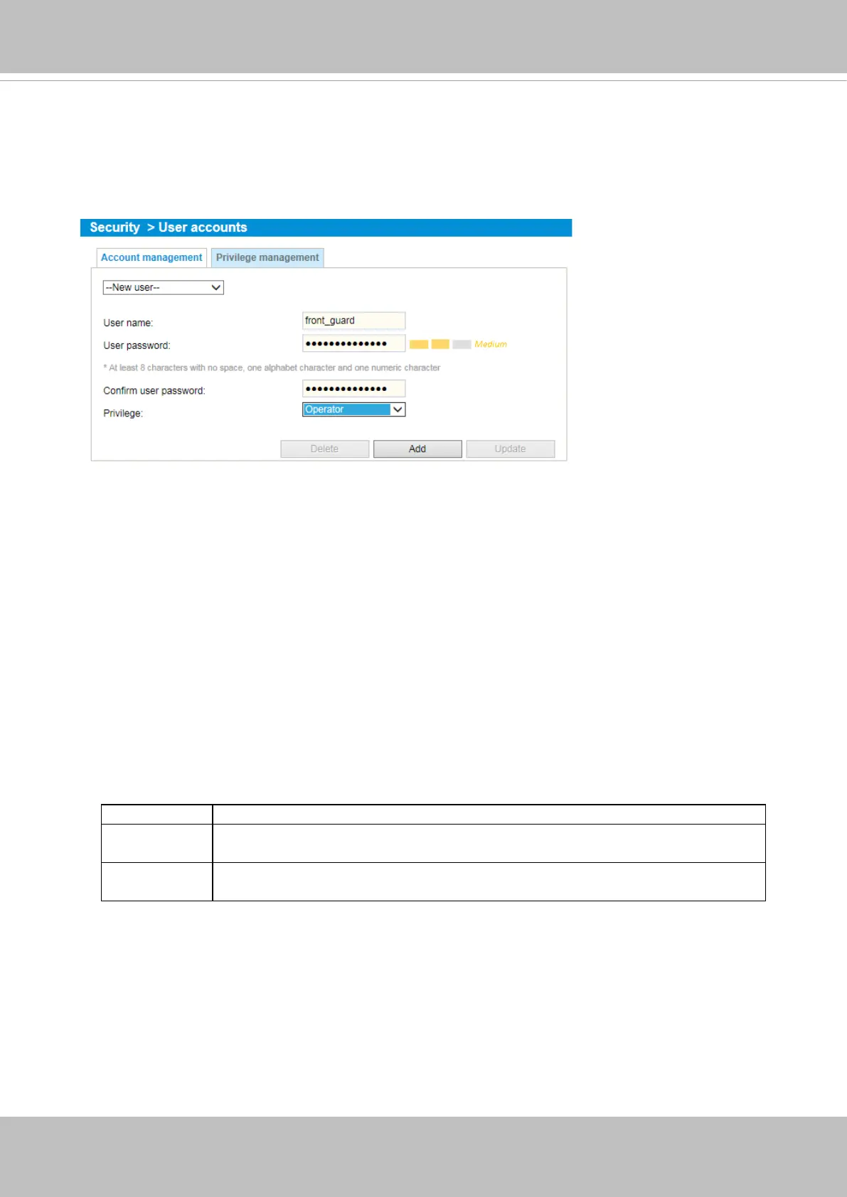 3. Select the privilege level for the new user account. Click Add to enable the setting.
