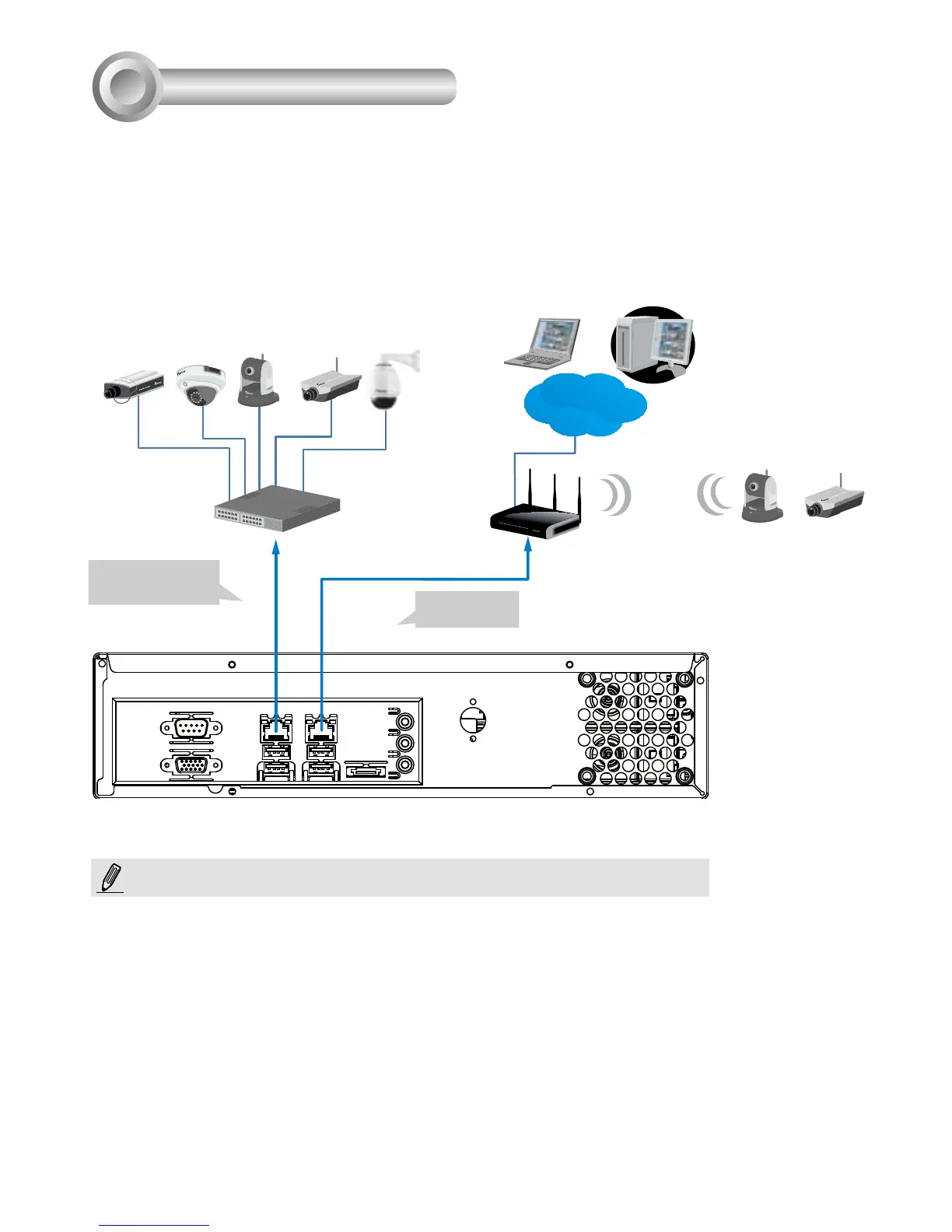 Connect network cameras to the NVR’s LAN ports.