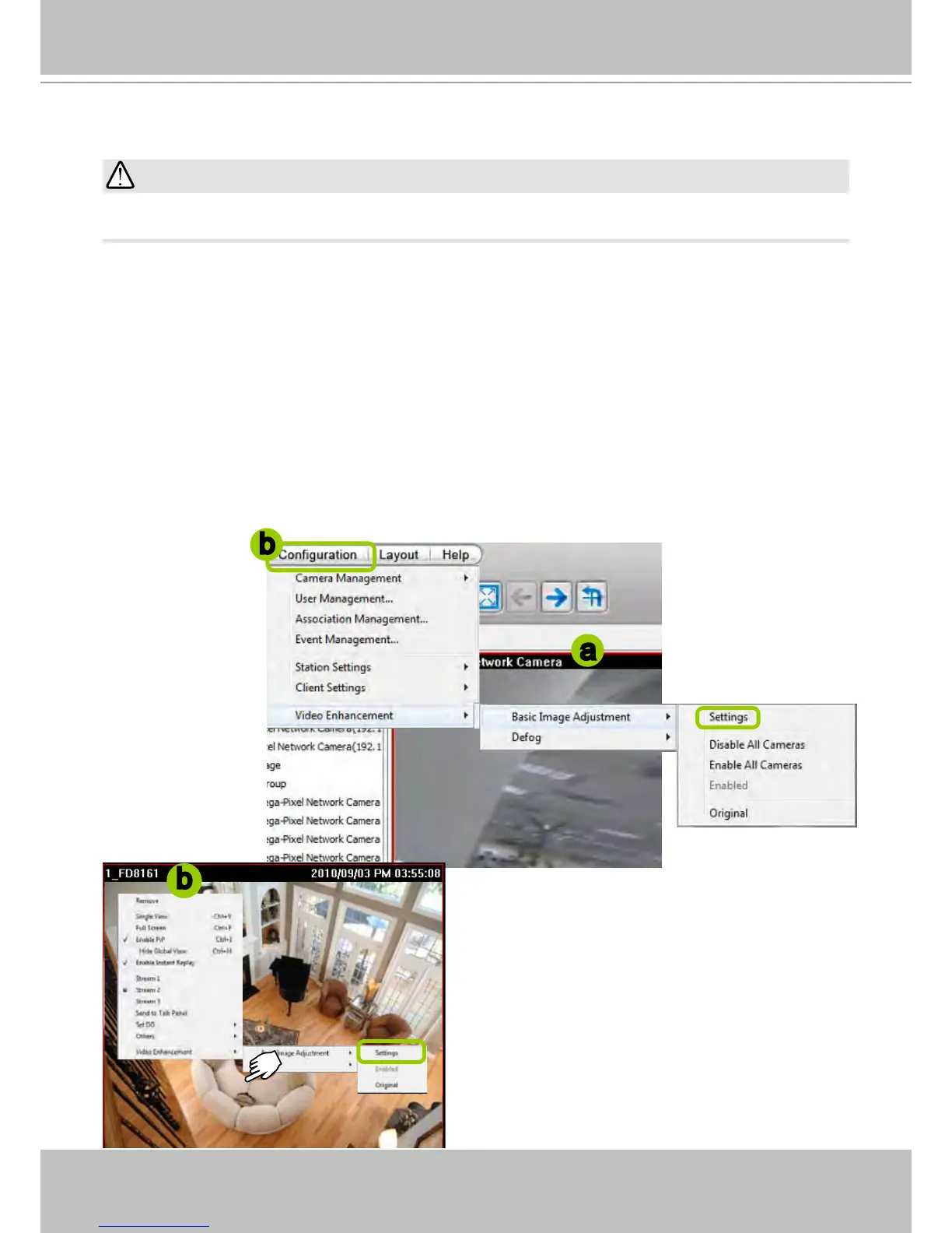 b. Click Configuration > Video Enhancement > Basic Image Adjustment > Settings on the menu