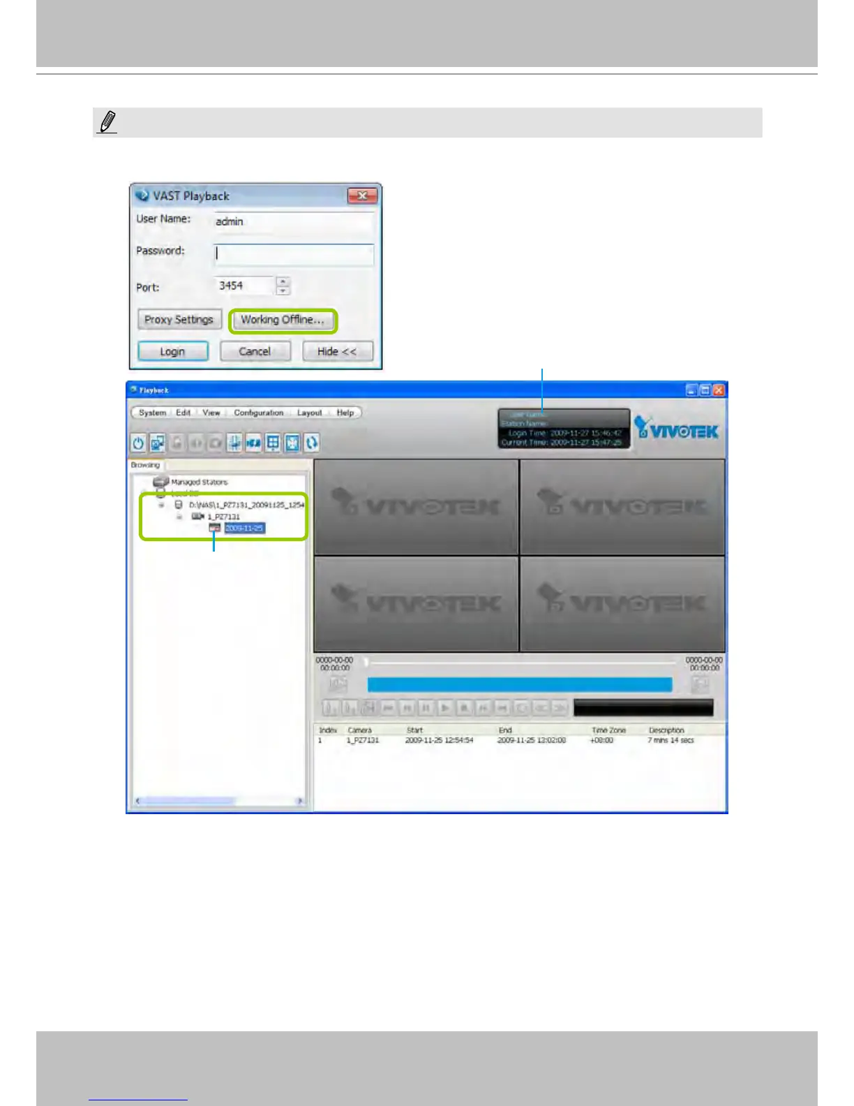 If you want to playback the backup les from the local database, you can also click Working Ofine in the Login