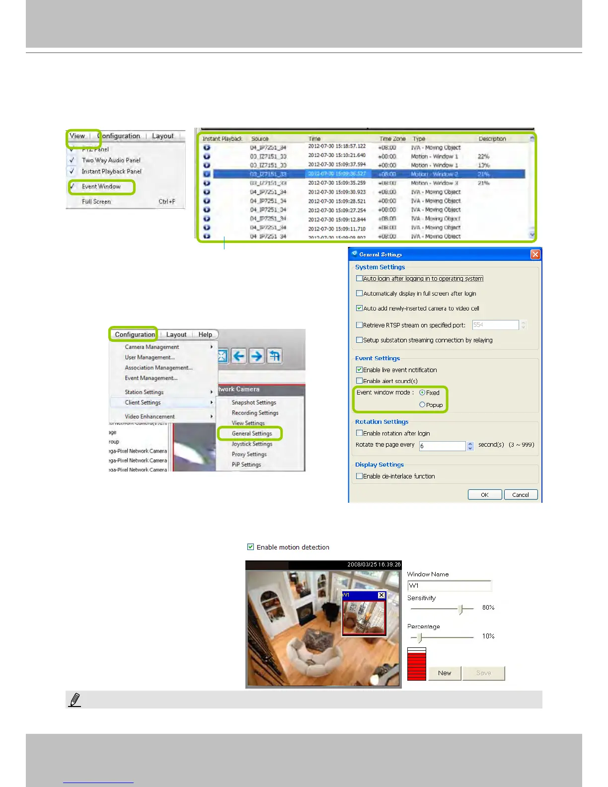 camera (left-click to select, right-click to oepn Camera Setting) to congure Motion Detection and set