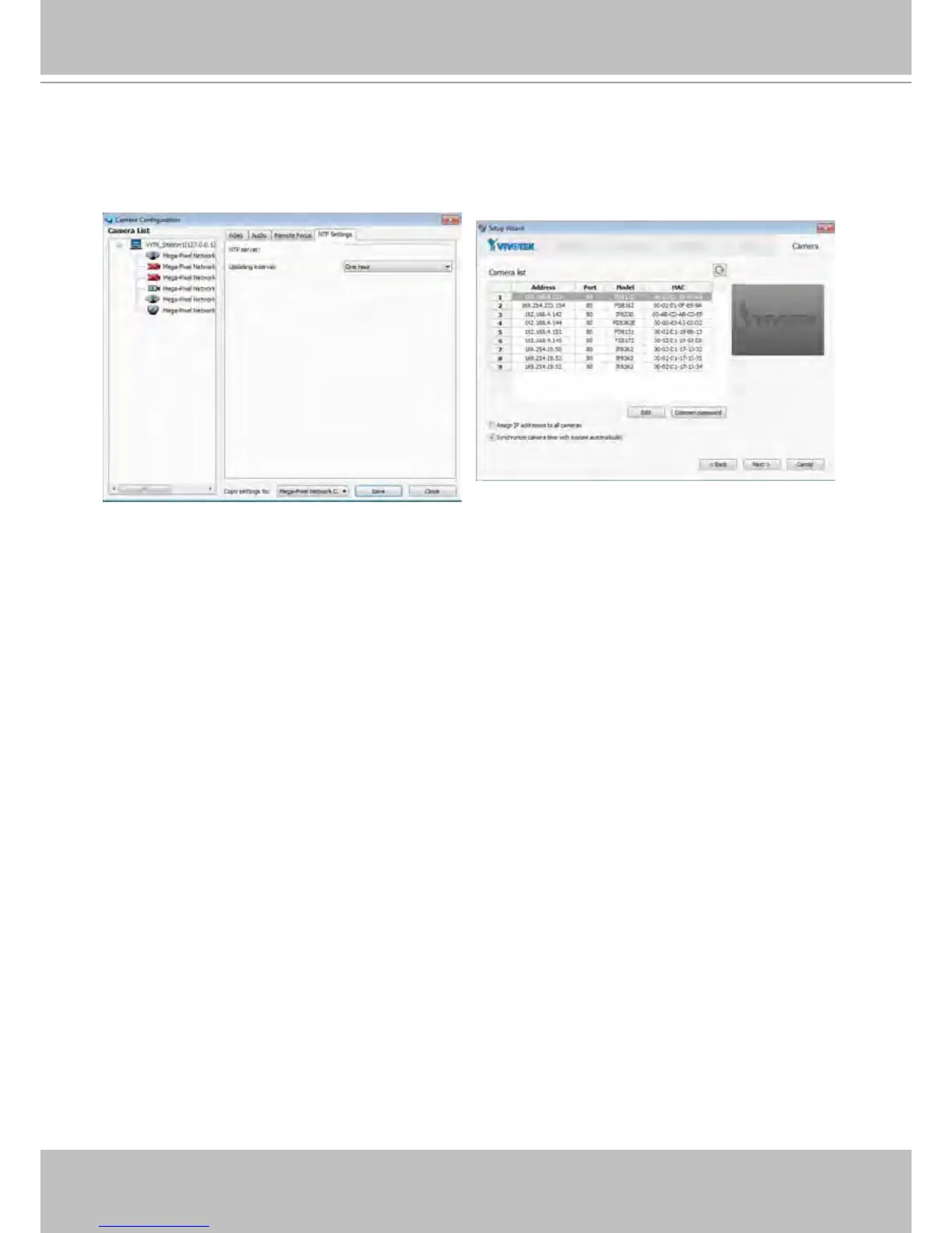 If cameras’ real time clocks are set to be synchronized with a time server, enter the NTP server’s ad-