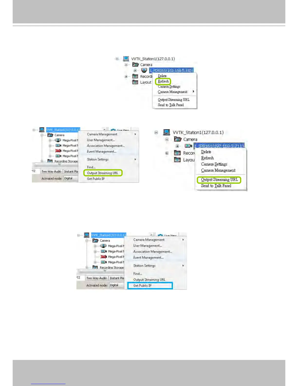Right-click the station or the device and click Output Streaming URL. A .txt le with streaming URL will