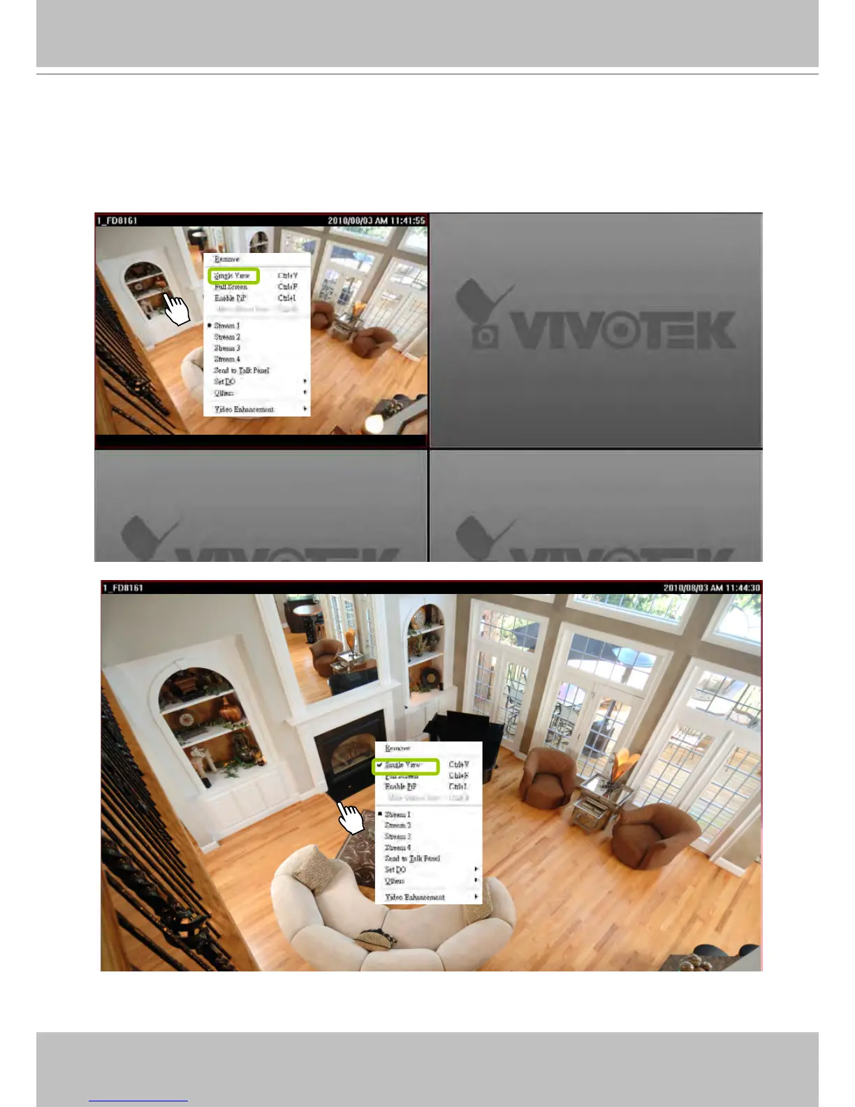 To restore to the original layout, double-click the video cell or right-click the video cell and uncheck