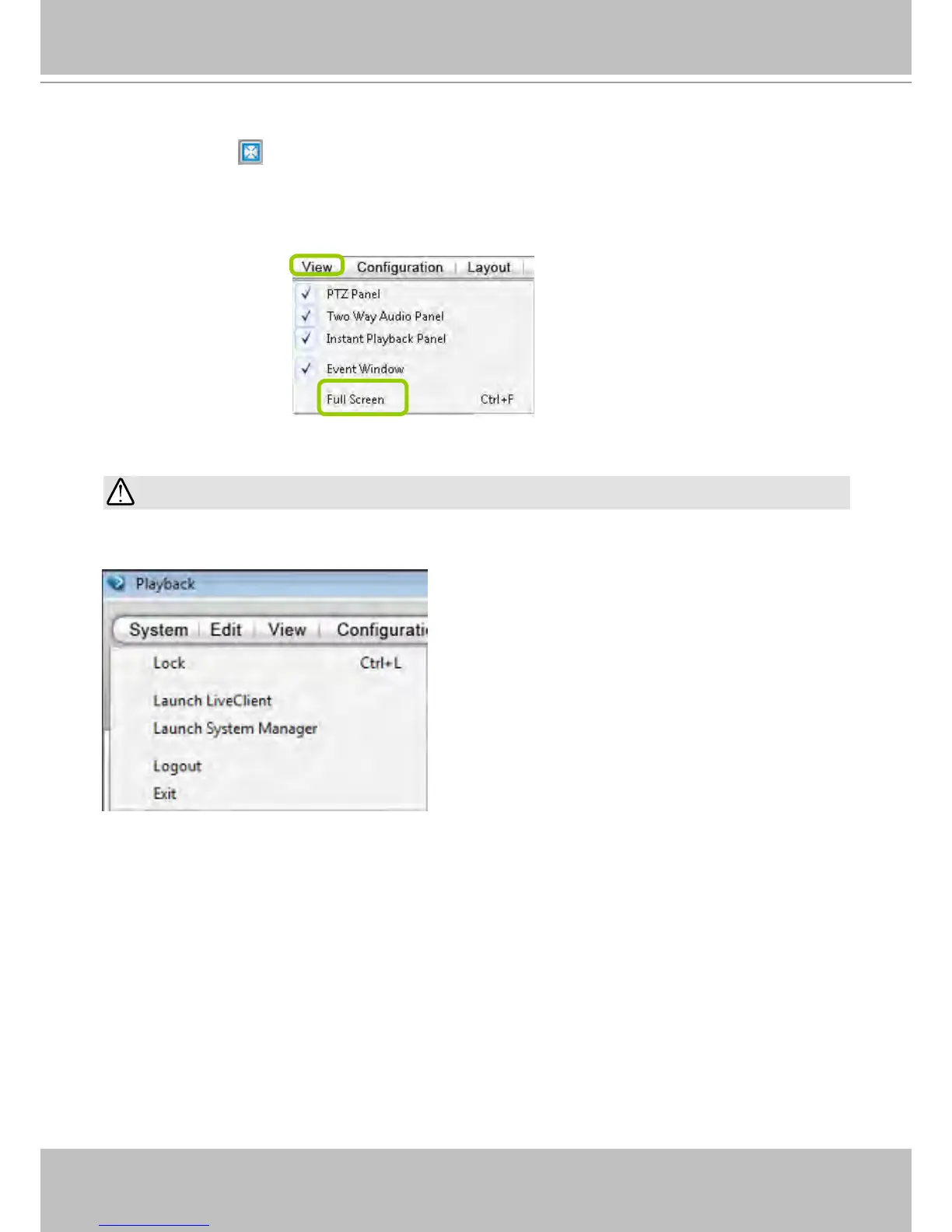 addition, you can also click View > Full Screen on the menu bar to maximize the live video monitoring
