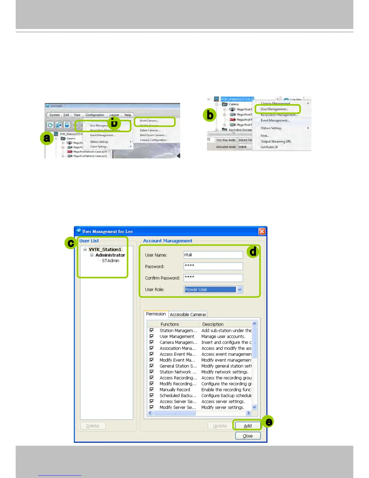 c. The User Management window will pop up. The user accounts under the station will be displayed