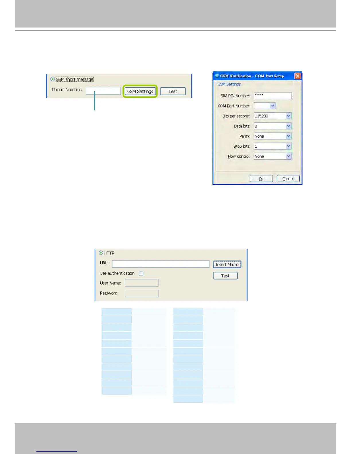 q. Please enter the Phone Number and open GSM Settings window to set related information if