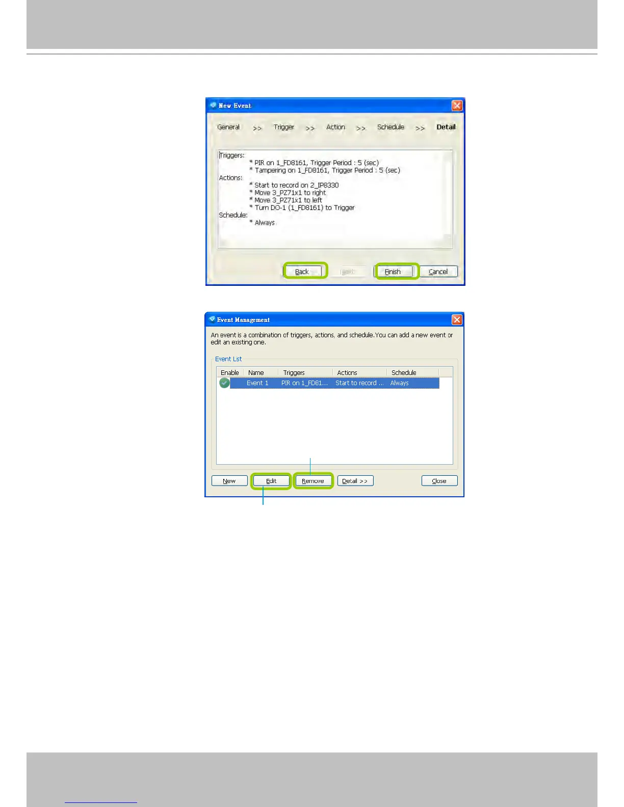 u. Following is the detailed information of the new event setting. You can click Back to modify the event