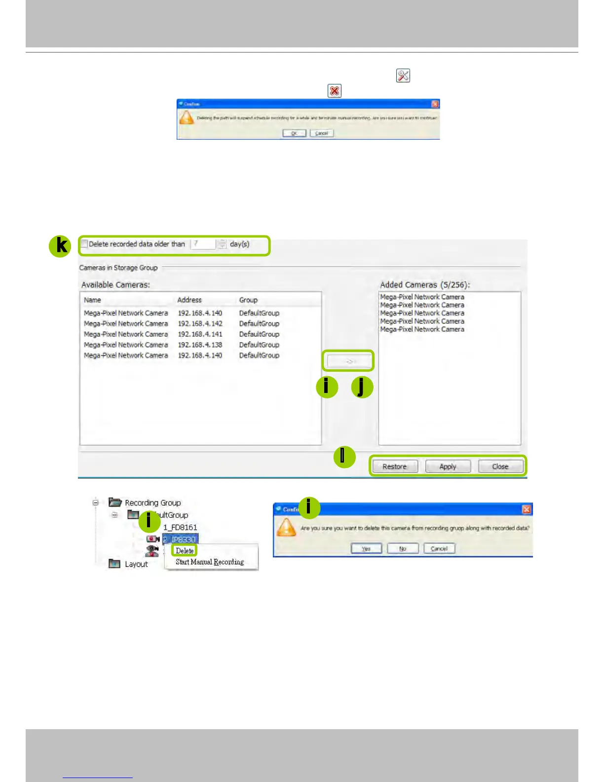 DefaultGroup tree to delete it). Note that a Delete Camera dialog box will pop up. Click Yes to delete