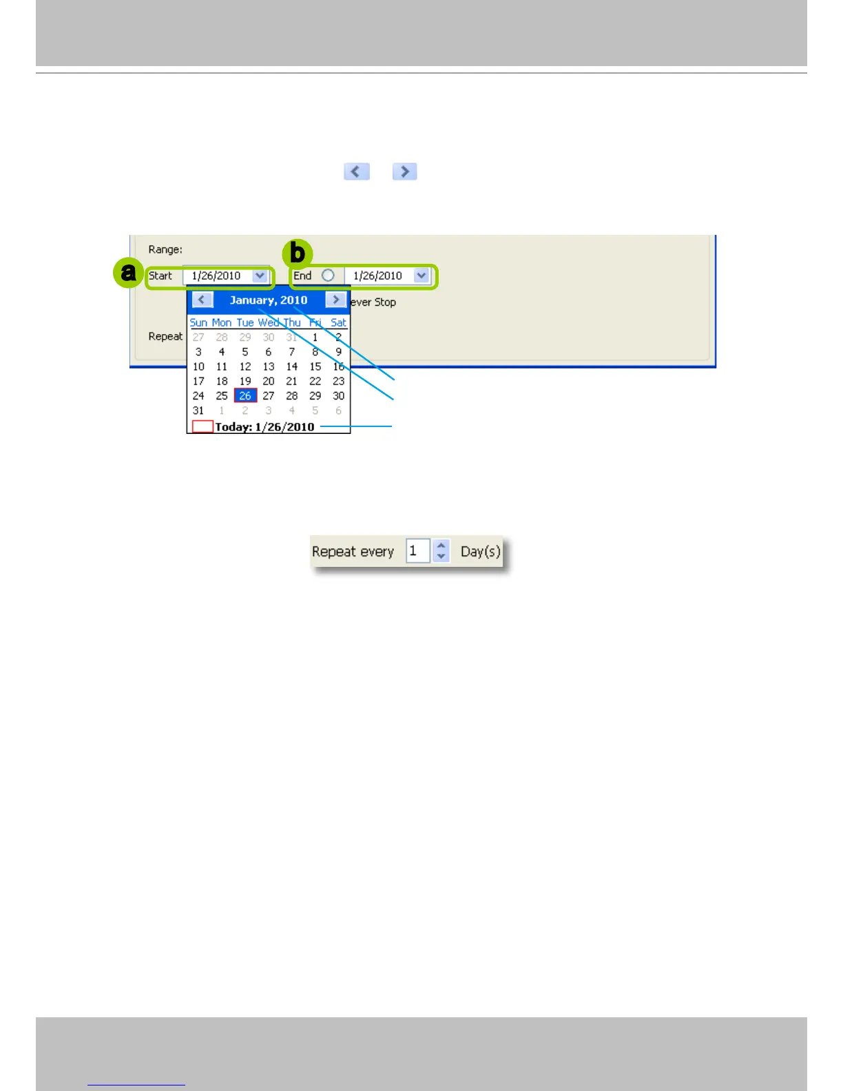 a. Specify the start date and time in the Start eld. A calendar date selector will appear when you click