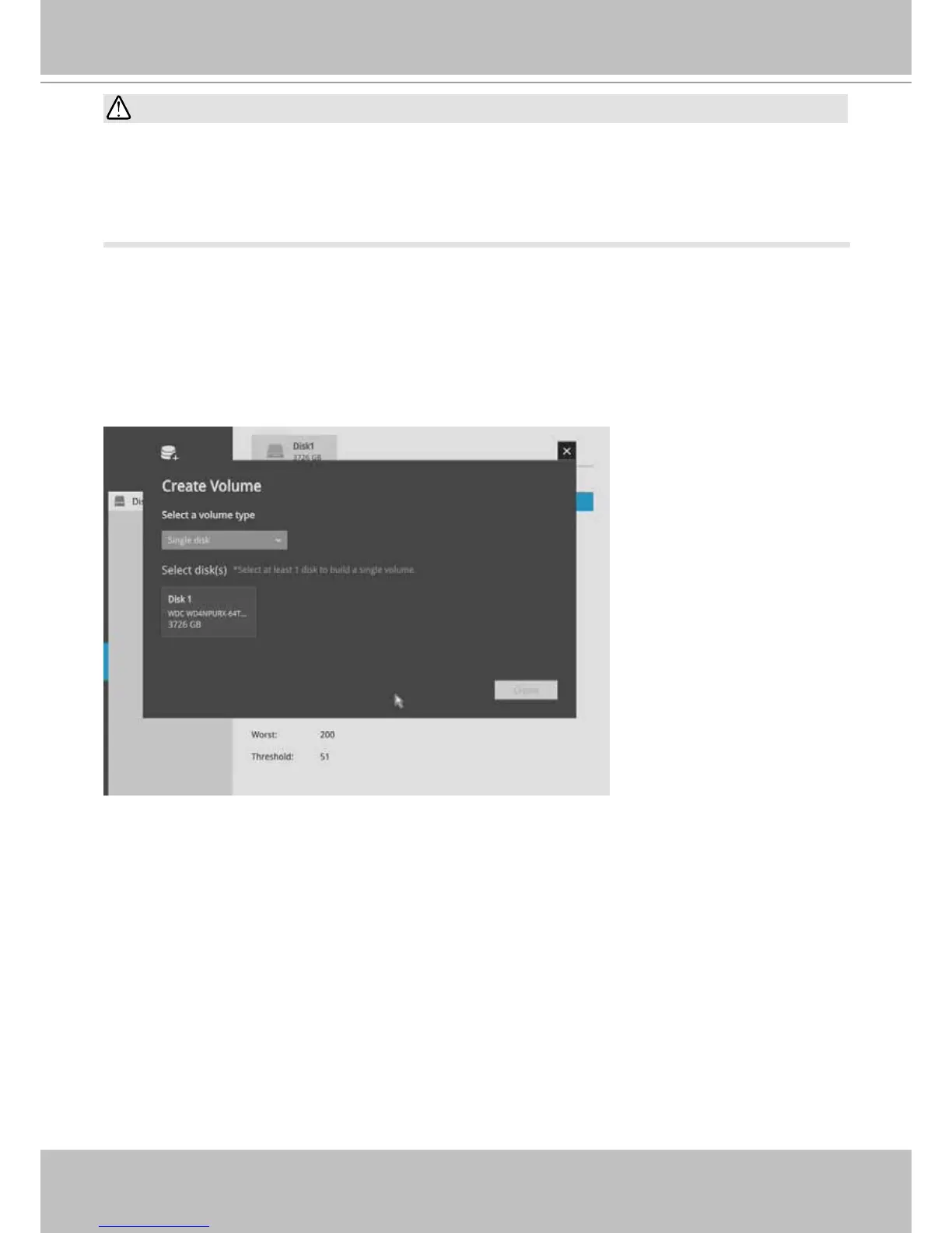 1. Click on the Create Volume button on top of the listed disk drives. The Create Volume