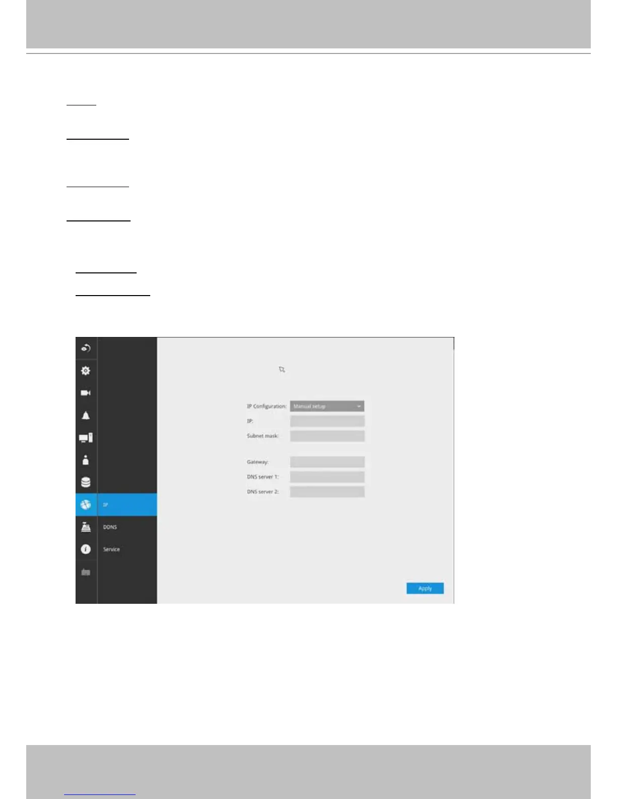 Manual setup: Select this option to manually assign a static IP address to the NVR.
