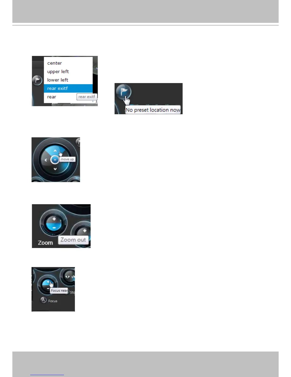 Pan/Tilt controller: A mouse hover over the arrow buttons activates the arrow button. Use the