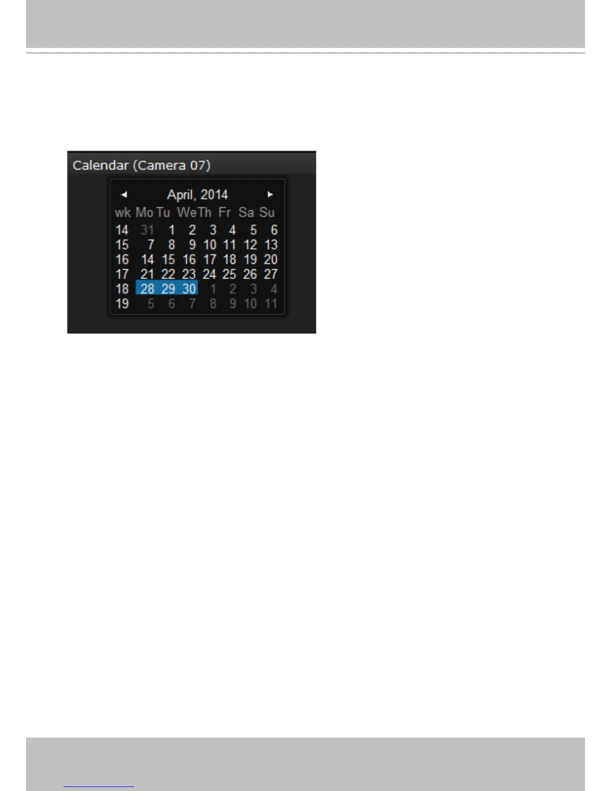 Double-click on any of the existing cameras to display the Calendar panel. Days with recorded
