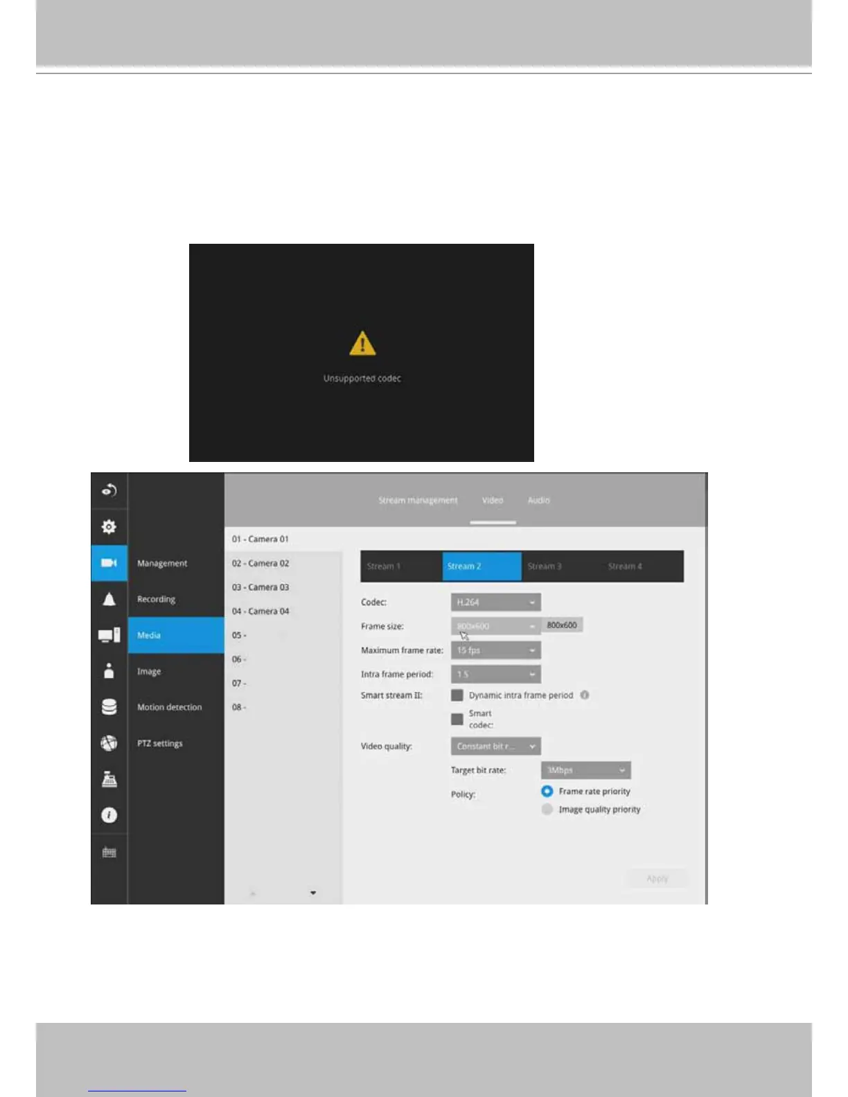 The default live view receives a camera's stream #1. If a camera's stream #1 is congured using