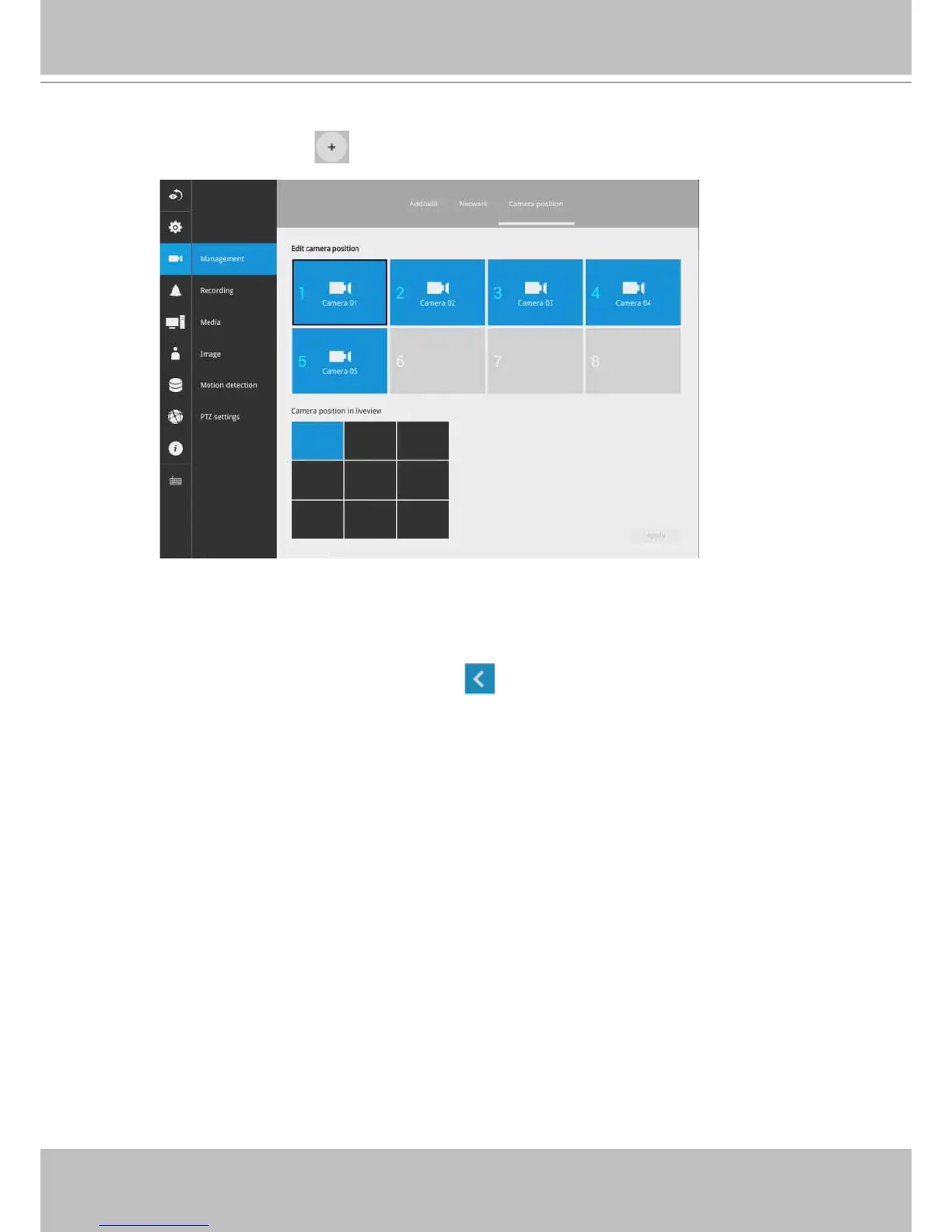 2. Click the Add button, the camera will be placed at an unoccupied position. You may