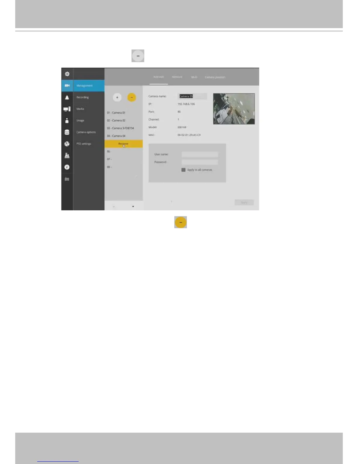 2. The Remove button will turn yellow . Mouse over to the camera you want to