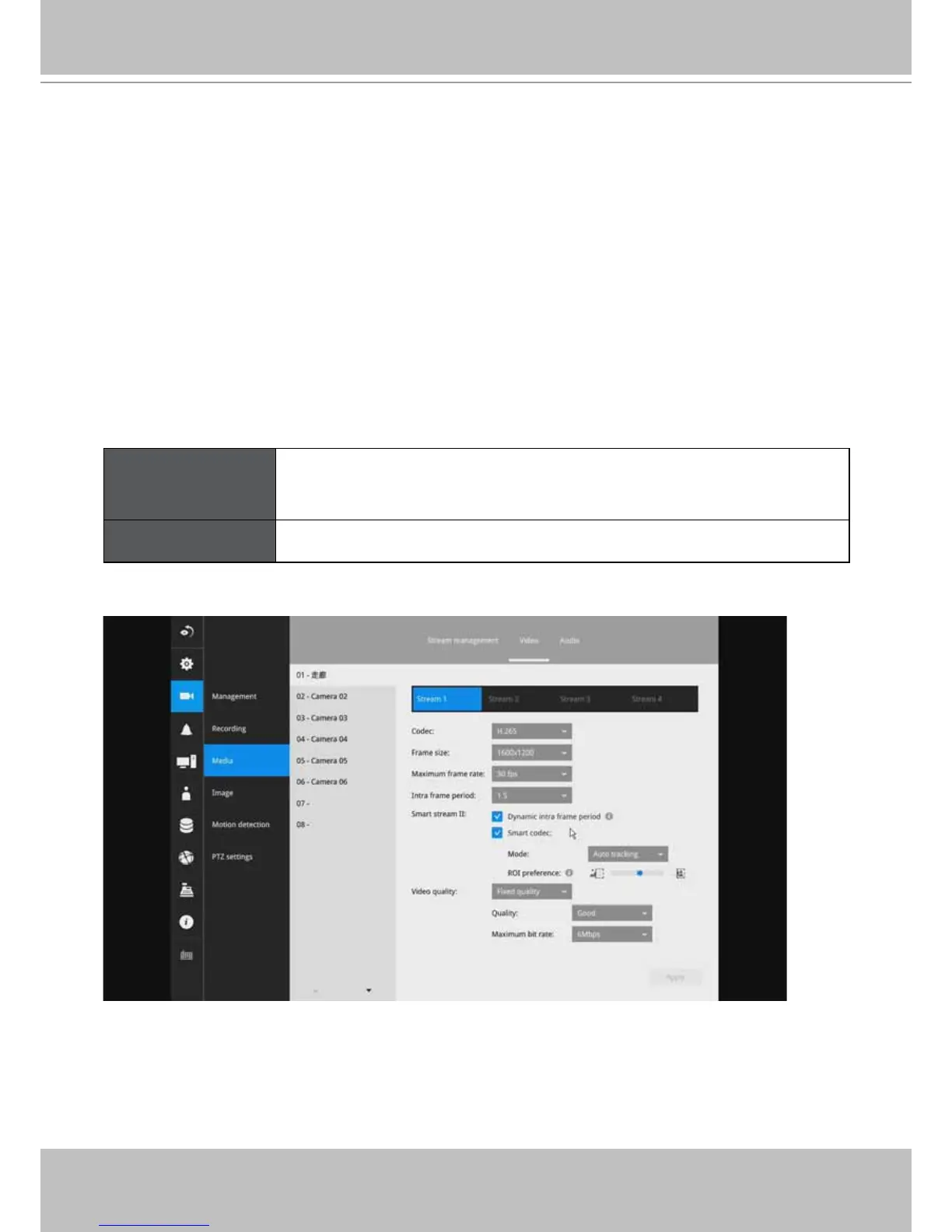The Video window allows you to congure all video streams (the no. of stream available can be