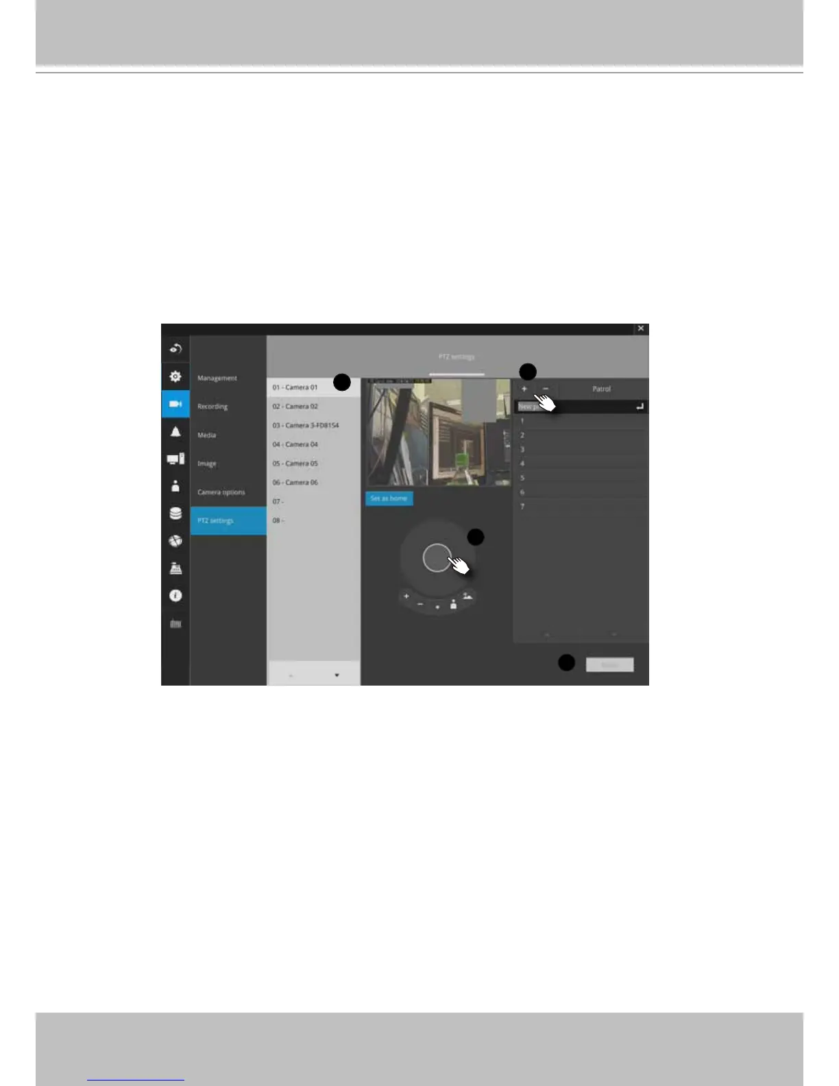 2. Use the PTZ panel or your joystick to move to a eld of view where you want to