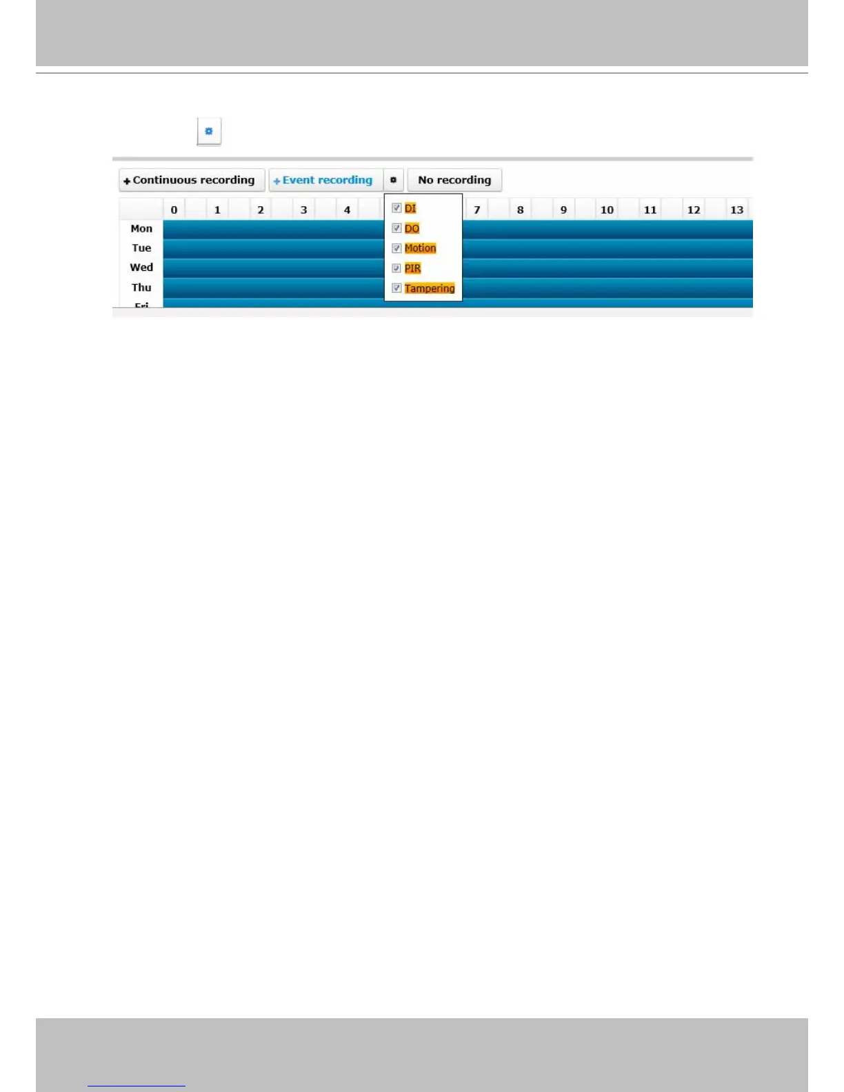 The Event recording is triggered by digital inputs or motion detection. You can click on the