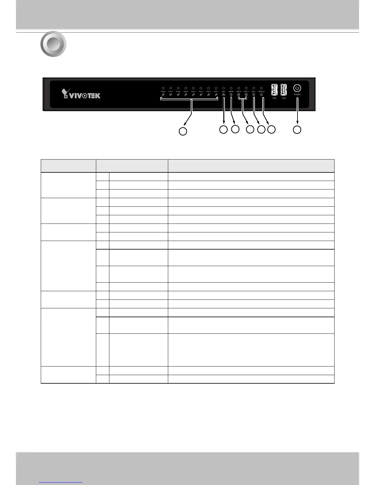 3. eSATA LED 1 Solid Green Indicating the status of the external eSATA device.