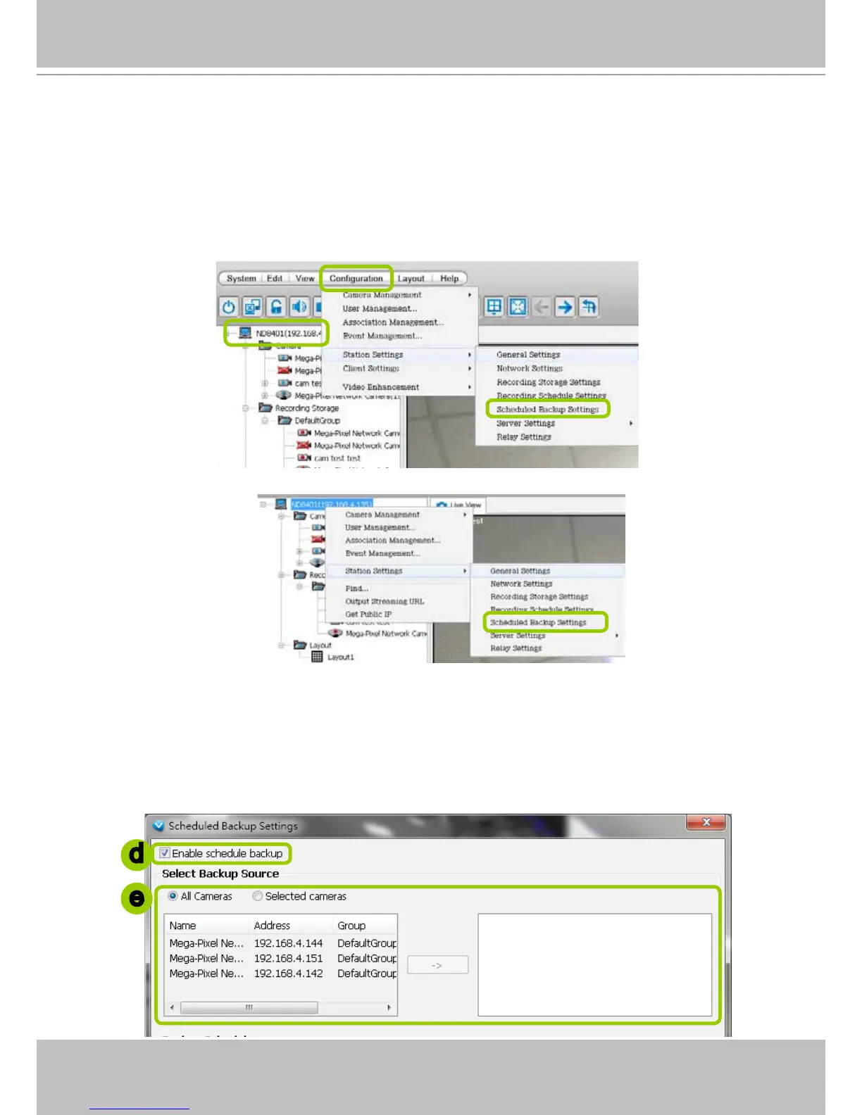 b. Click Conguration > Station Settings > Scheduled Backup Settings on the menu bar (or right-