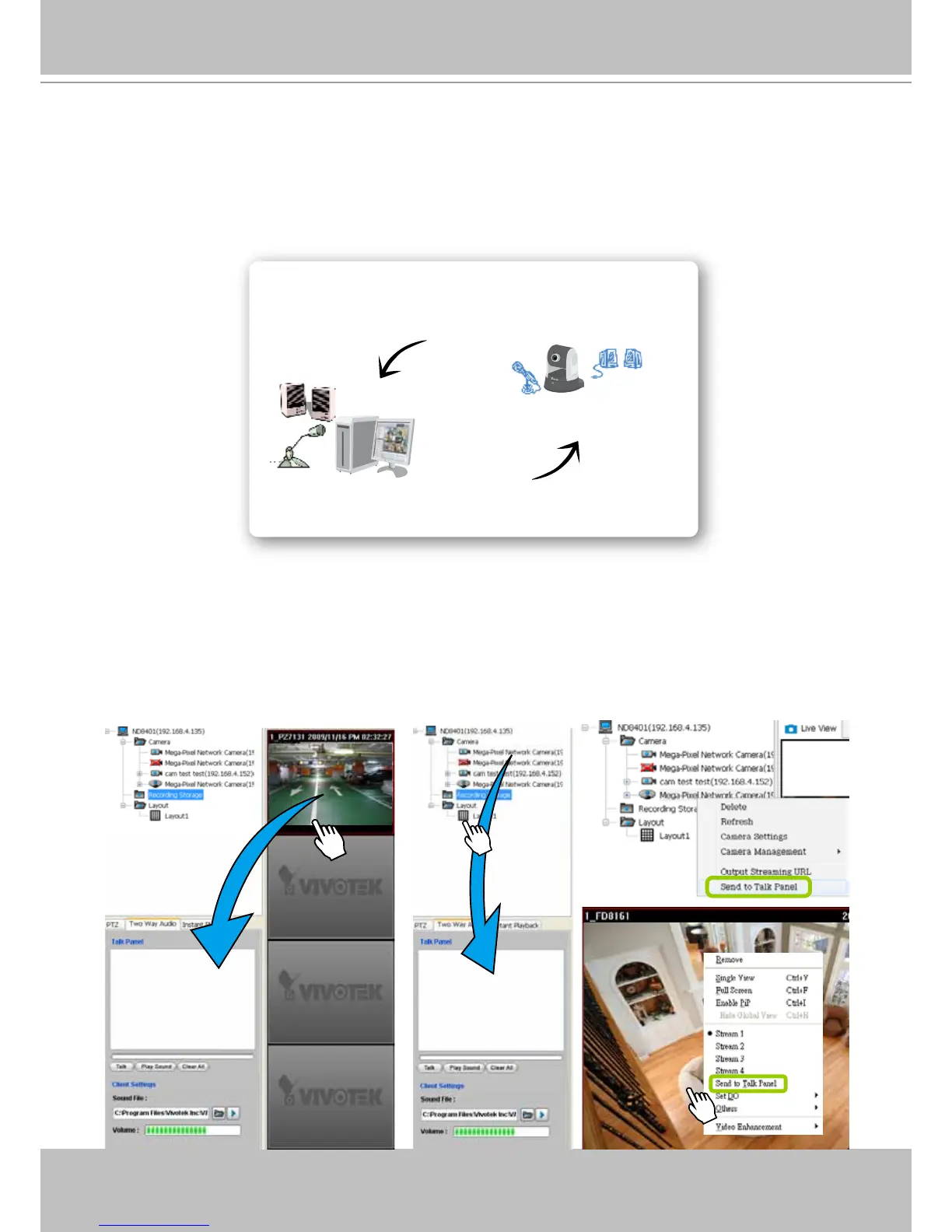 shown below. You can also right-click the target camera or the video cell, then click Send to Talk