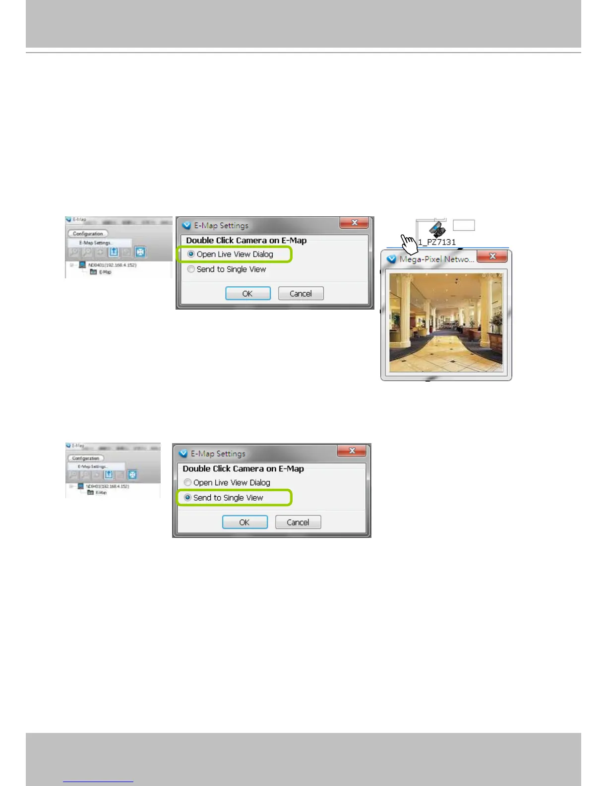 triggers, a live view dialog will pop up beside it. It is the default setting in E-map Settings window.